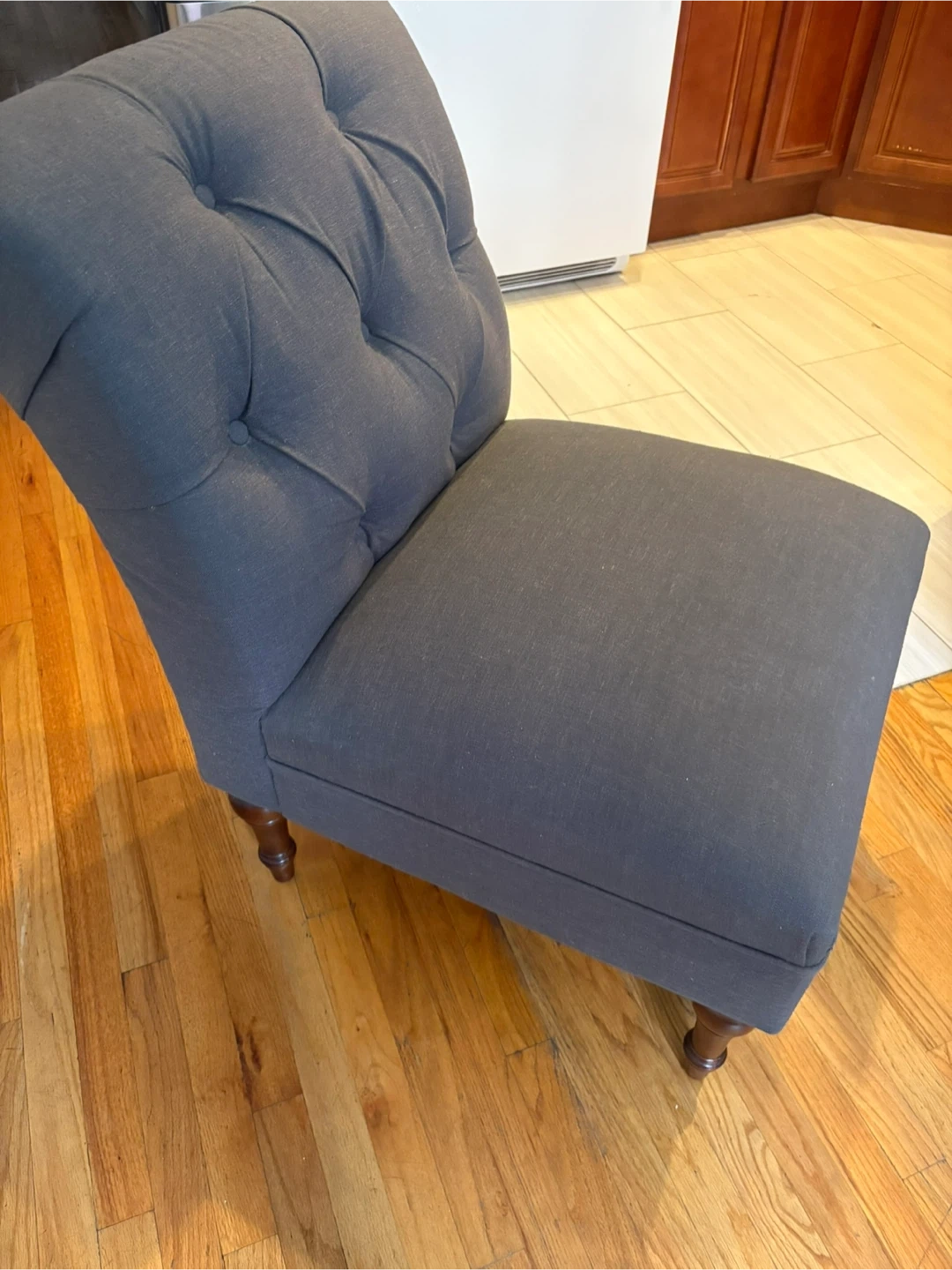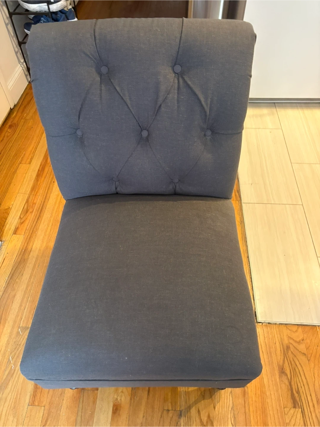 Buy & SellUpholstered Dining Chair - GrayUpholstered Dining Chair - Gray$49Here's a lovely gray upholstered dining chair that would look great in any home! It features a button-tufted back and a comfortable seat.ConditionGoodWHERE TO MEETCheck LocationView MapSELLERverifiedMarcoChelsea600 reviews0 chats·2 favorites·46 views