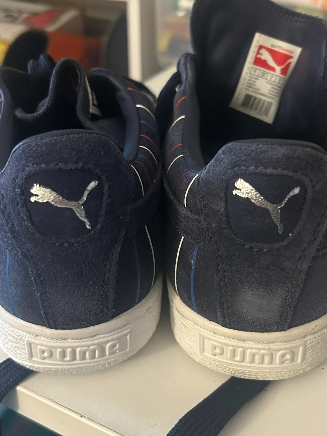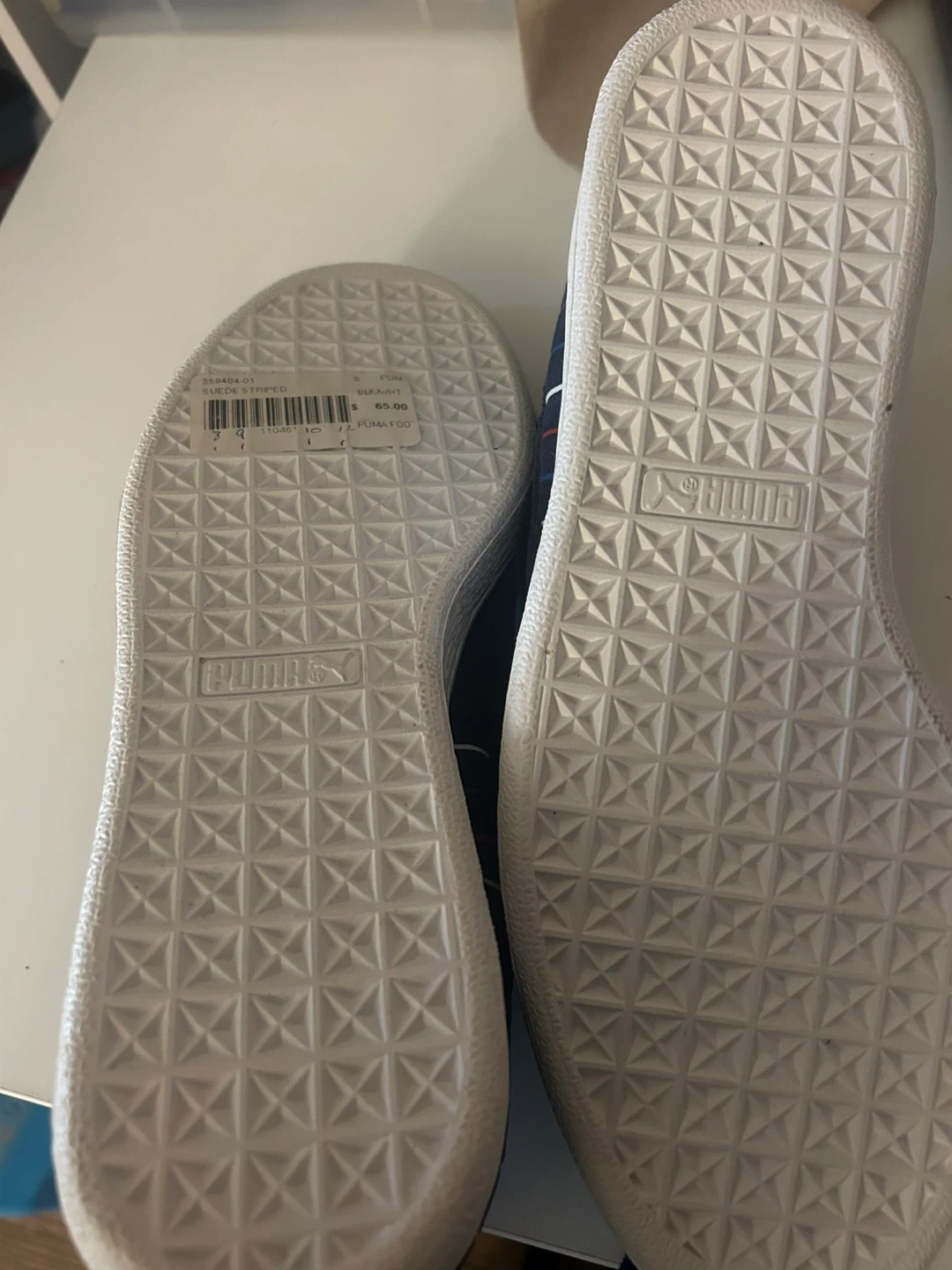 Buy & SellPuma Suede Striped Sneakers - US 8Puma Suede Striped Sneakers - US 8$45Selling a pair of Puma Suede Striped sneakers! They're a stylish navy blue with red and white stripes. The size is US 8. Originally bought for $65 I think they run bigConditionNewBrandPuma0 chats·0 favorites·4 viewsSELLERJoannaRego Park361 reviewWHERE TO MEETCheck Location