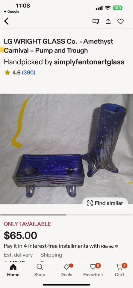 LG WRIGHT GLASS CO PUMP AND TROUGH—COBALT