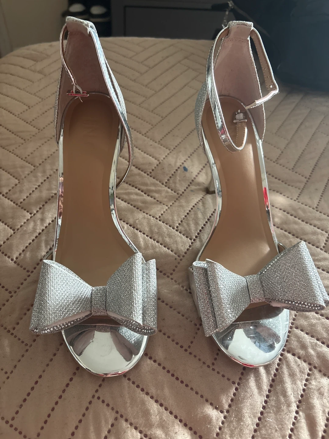 Buy & SellSilver Glitter Bow Heels - Size 8 1/2Silver Glitter Bow Heels - Size 8 1/2$15These are a cute pair of silver glitter heels with a bow detail! They are a size 8 1/2 and would be perfect for a special occasionConditionNewSize8.5BrandInc0 chats·0 favorites·13 viewsSELLERverifiedDanielaCorona600 reviewsWHERE TO MEETCheck Location