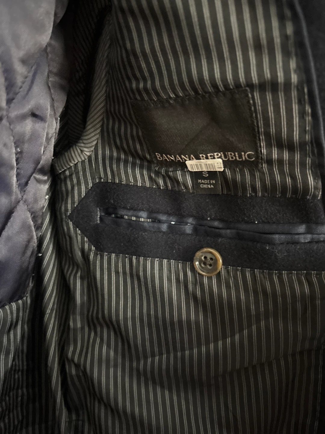 Selling a Banana Republic coat made with Nova Fides wool! It's a size small and features a stylish design. Perfect for staying warm and looking sharp!