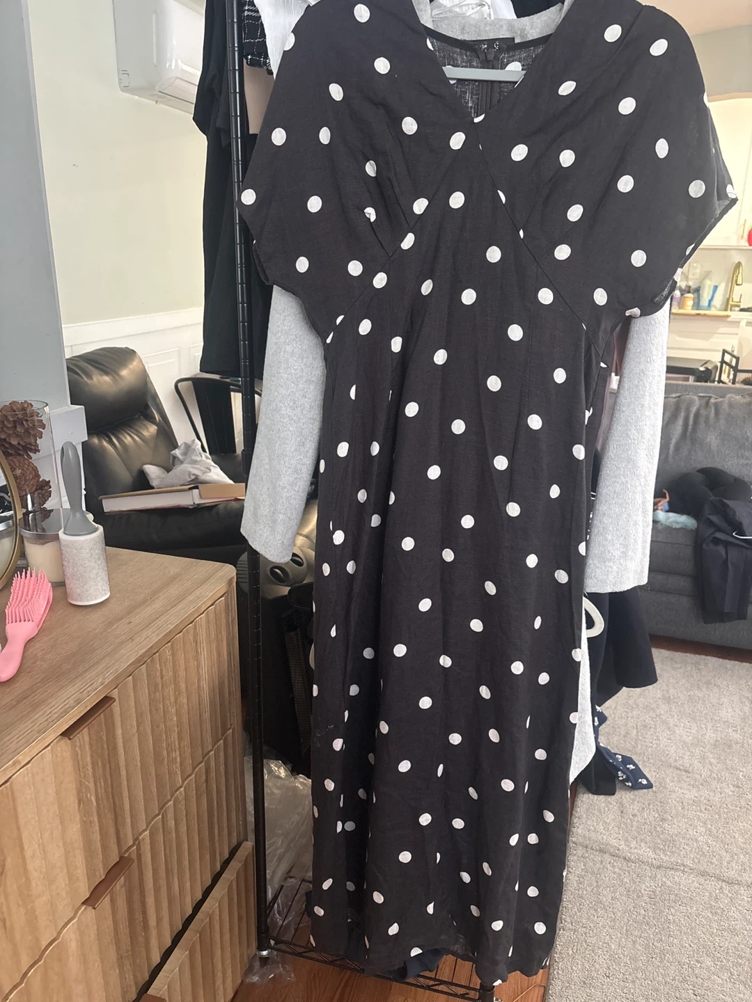 65Selling a cute Zara dress featuring a black and white polka dot pattern