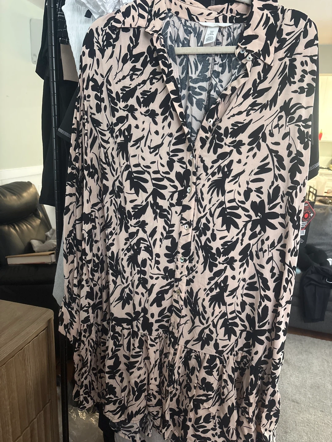 65Selling a cute H&M dress with a black floral print on a light pink background! It's a size M and in great condition
