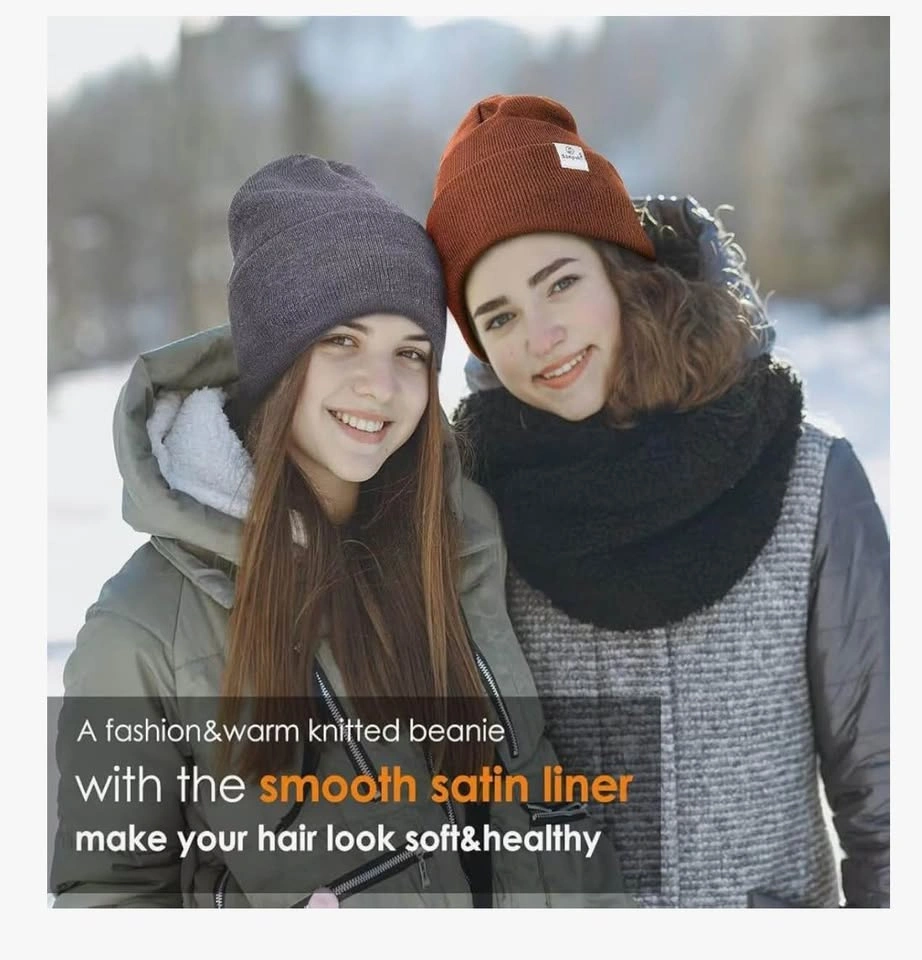 1213 Pack Satin Lined Winter Beanie Hats for Women, Silk Lined Soft Hat Stocking Stuffers for Women