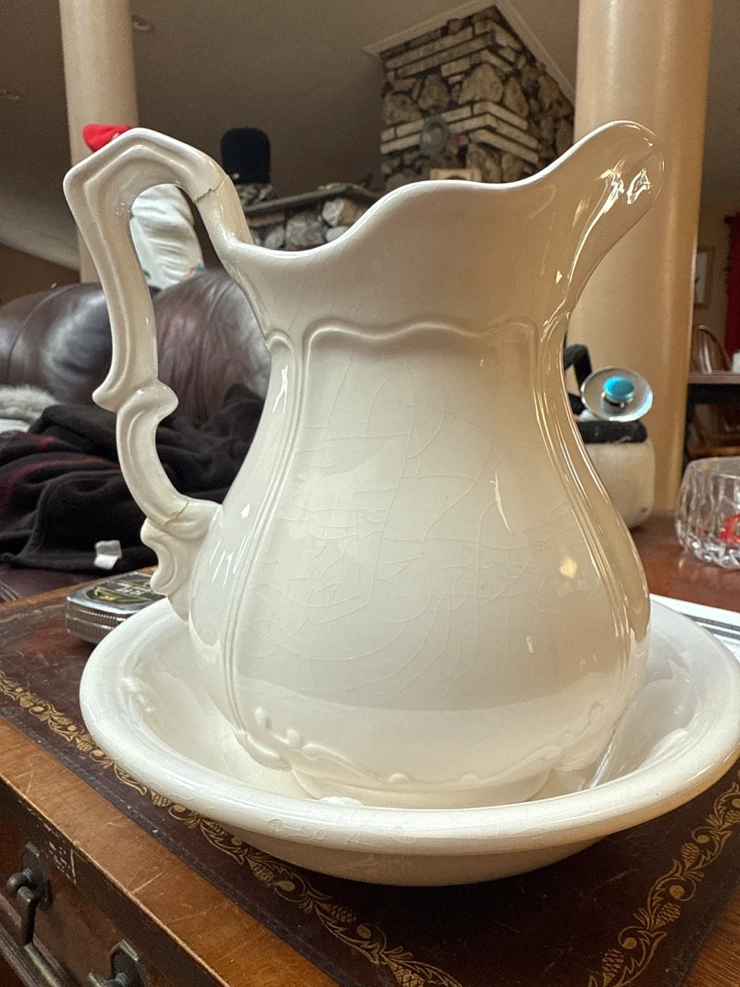 Buy & SellRosie Cream Pitcher & BowlRosie Cream Pitcher & Bowl$20Selling a Rosie white pitcher and bowl It has some wear and tear, but still has a lot of charm! Handle was crackedDimensions6w x 7.5h0 chats·0 favorites·2 viewsSELLERverifiedLisaRonkonkoma600 reviewsWHERE TO MEETCheck Location