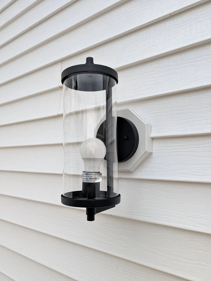 This light is brand new and still sealed in the original box. I'm selling the last one from a project and don't need it. The photos of the light on the house are from an identical one I already installed, so you can see exactly what it looks like.