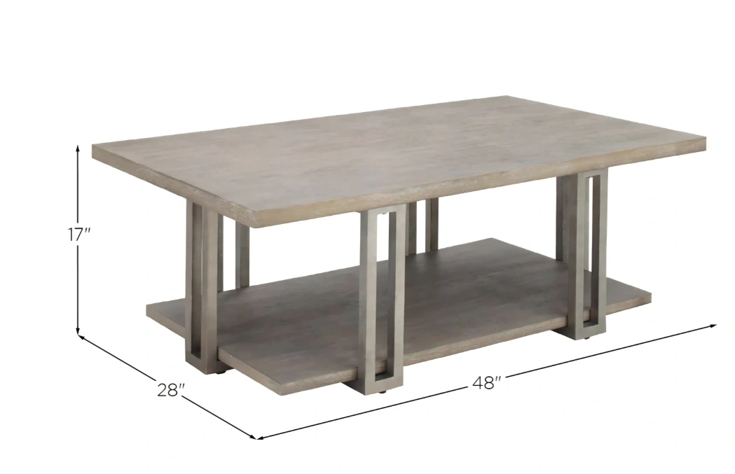 Rectangular coffee table in great condition! It measures 48 inches in length, 28 inches in width, and 17 inches in height. This stylish coffee table would be a great addition to any living room setup.