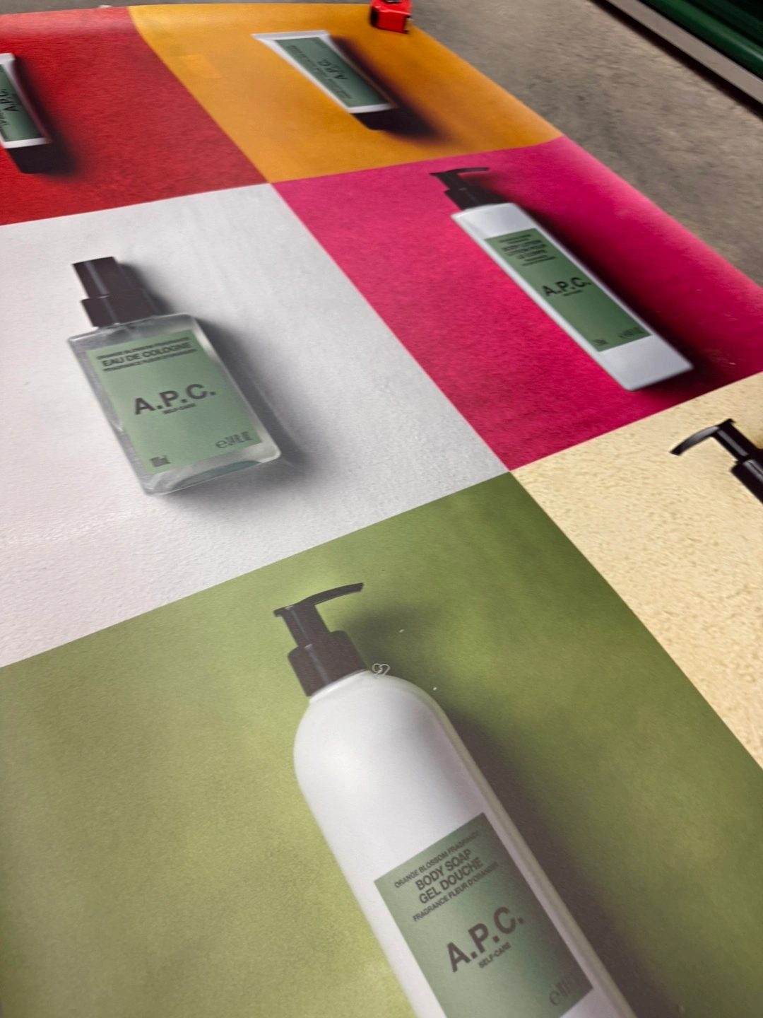 This is an A.P.C. beauty poster featuring different A.P.C. beauty products. It's a great piece for any beauty enthusiast or A.P.C. fan!