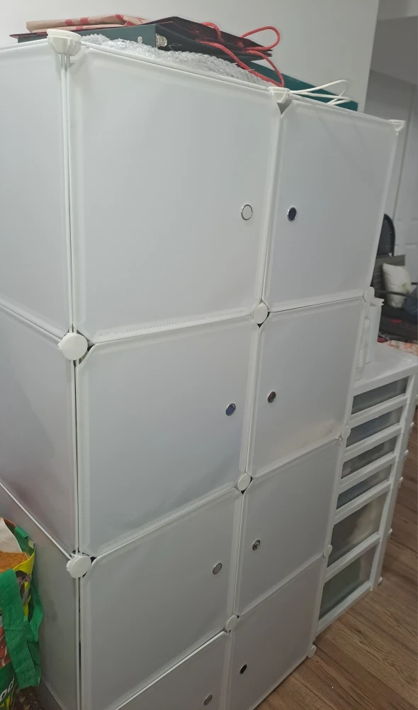 Selling a SortWise stackable cubes organizer. It's in great condition and comes with the assembly instructions and a small wooden hammer to help put it together. Perfect for organizing your space!