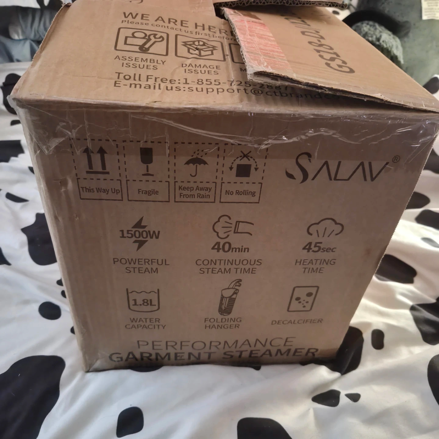 Selling a like-new SALAV Performance Garment Steamer, model GS18-DJ/120 in black! It comes in the original box and includes the user manual.