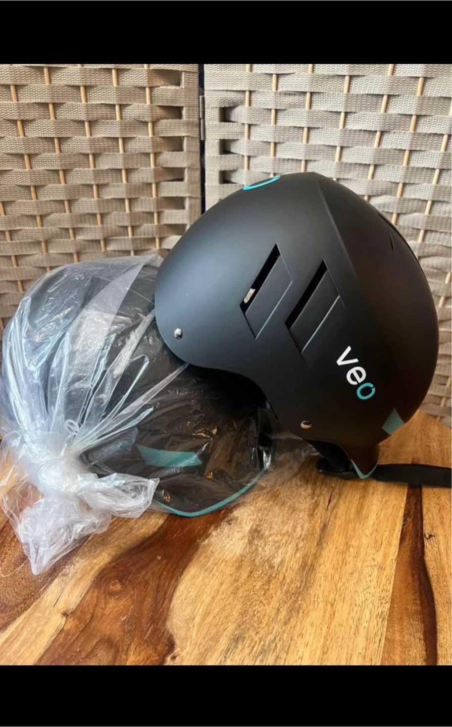 This is a black Veo bike helmet. It's designed for safe riding. The helmet has a matte black finish with the Veo logo visible.