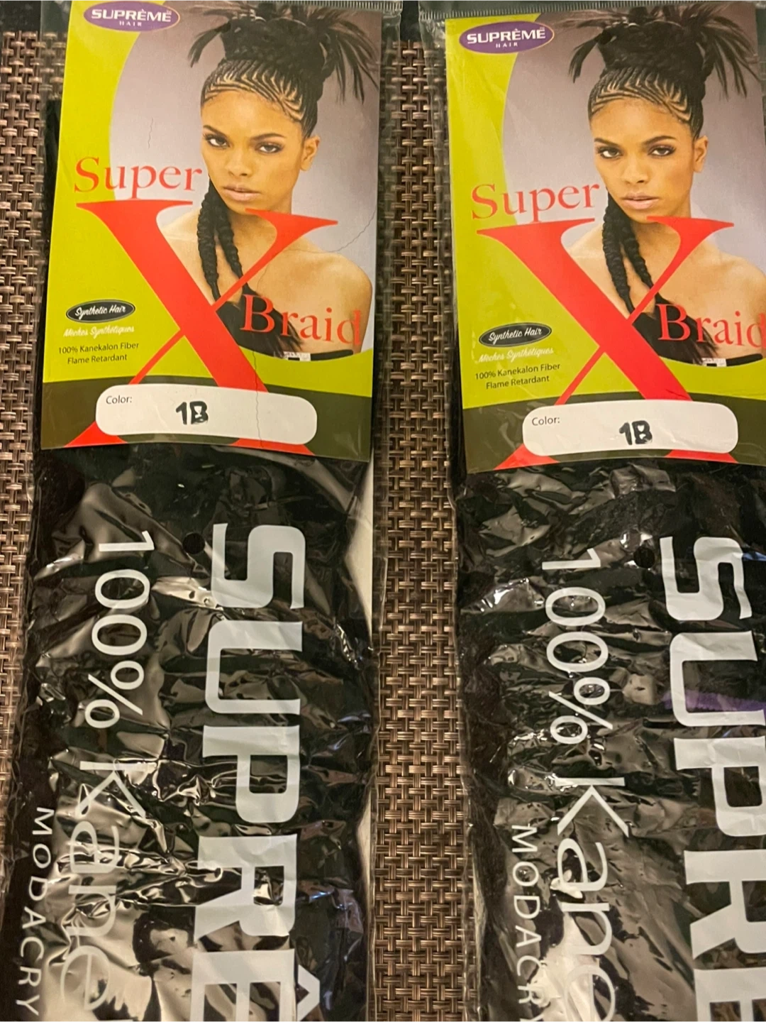 Buy & SellSupreme Hair Super X Braid - Color 1BSupreme Hair Super X Braid - Color 1B$93 packs 100% Kanekalon Synthetic Hair. Color 1B. Made in Senegal.ConditionNewBrandSupreme HairWHERE TO MEETParkchester - Metropolitan AvenueView MapSELLERverifiedDeniseParkchester600 reviews0 chats·0 favorites·3 views