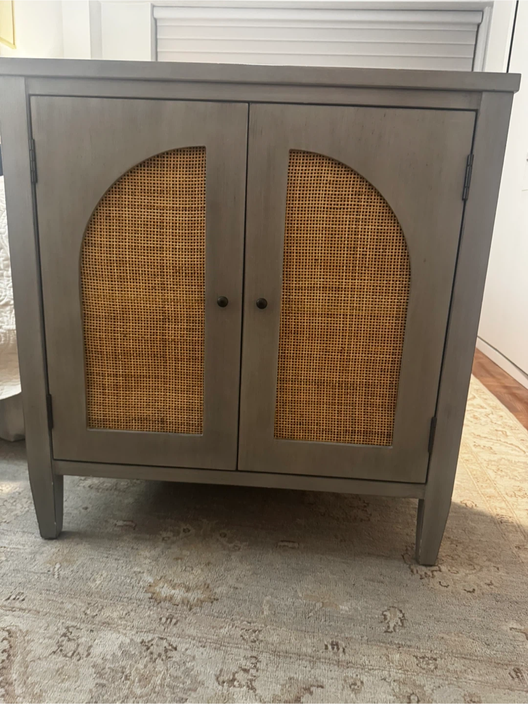 Gray Cabinet with Rattan Doors