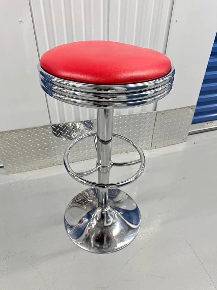 Retro Chrome Bar Stool With Red Seat And Hydraulics
