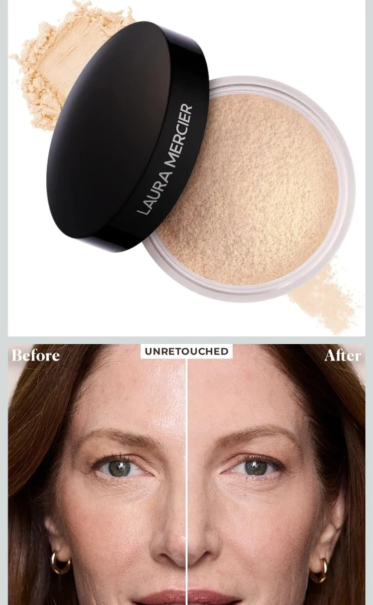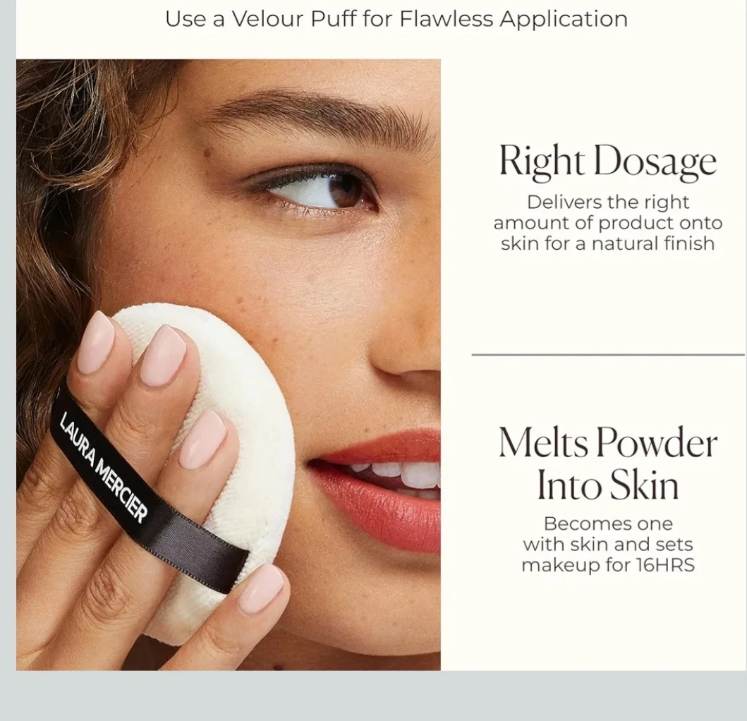 Get flawless application with Laura Mercier Translucent Loose Setting Powder! It delivers the right dosage and melts powder into the skin, setting makeup for 16 hours. It also provides 24-hour shine control, sets makeup, and is infused with Vitamins C and E powders, while blurring the appearance of texture and pores