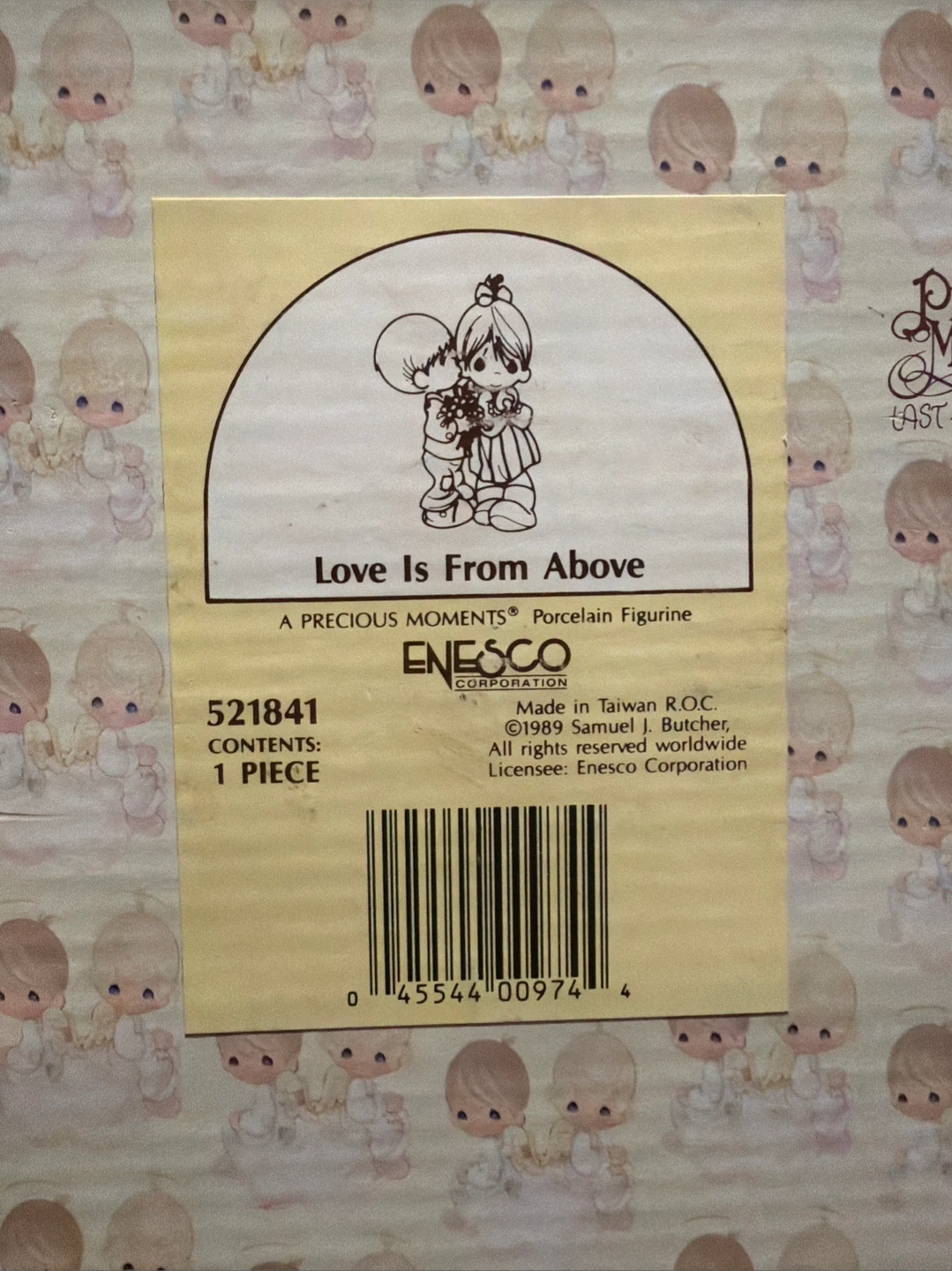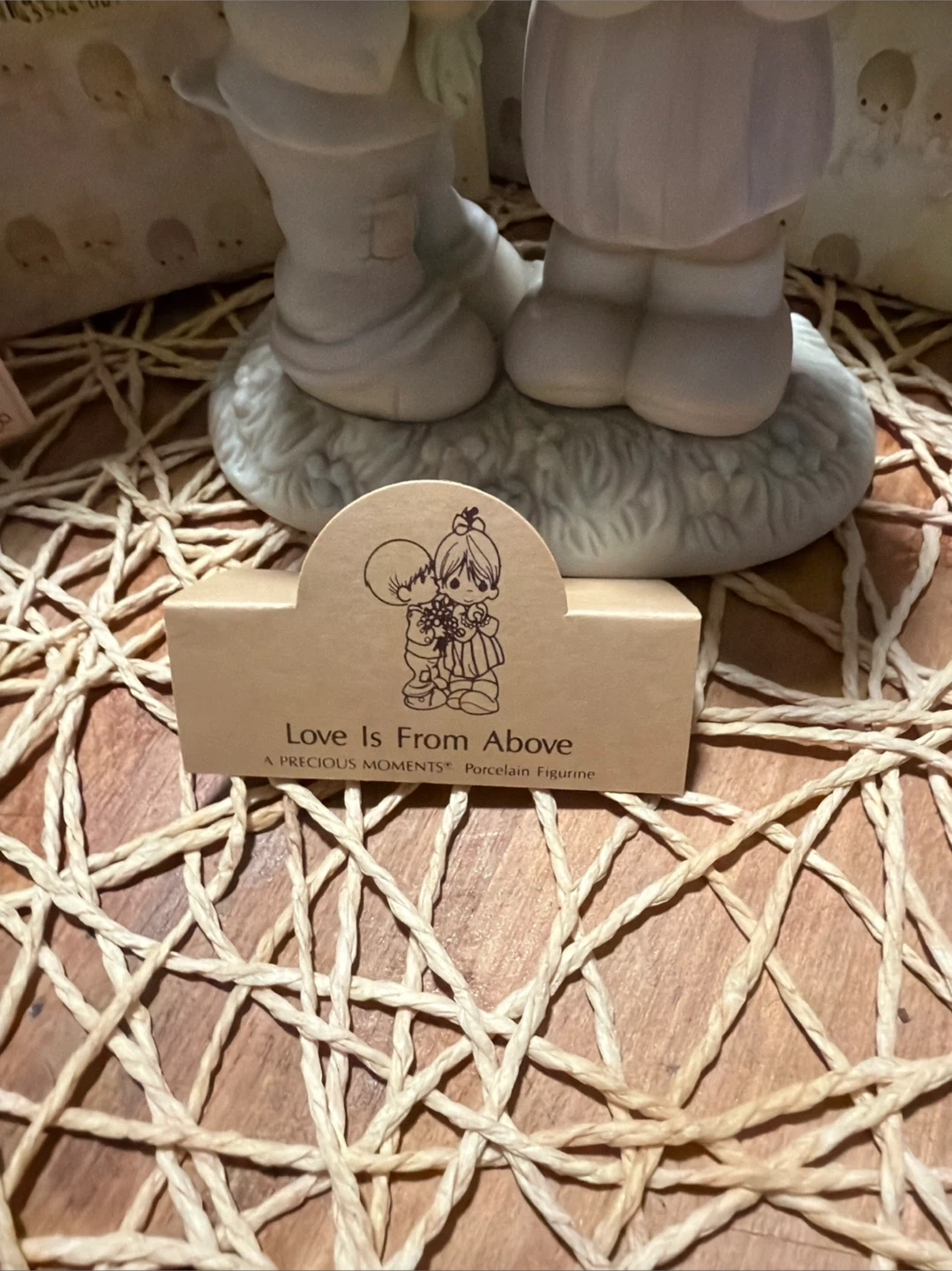 This is an adorable Precious Moments figurine titled "Love Is From Above"! It's a sweet porcelain figurine from the Precious Moments collection. The figurine is in excellent condition. It comes with its original box and packaging, making it a perfect addition to any collection!