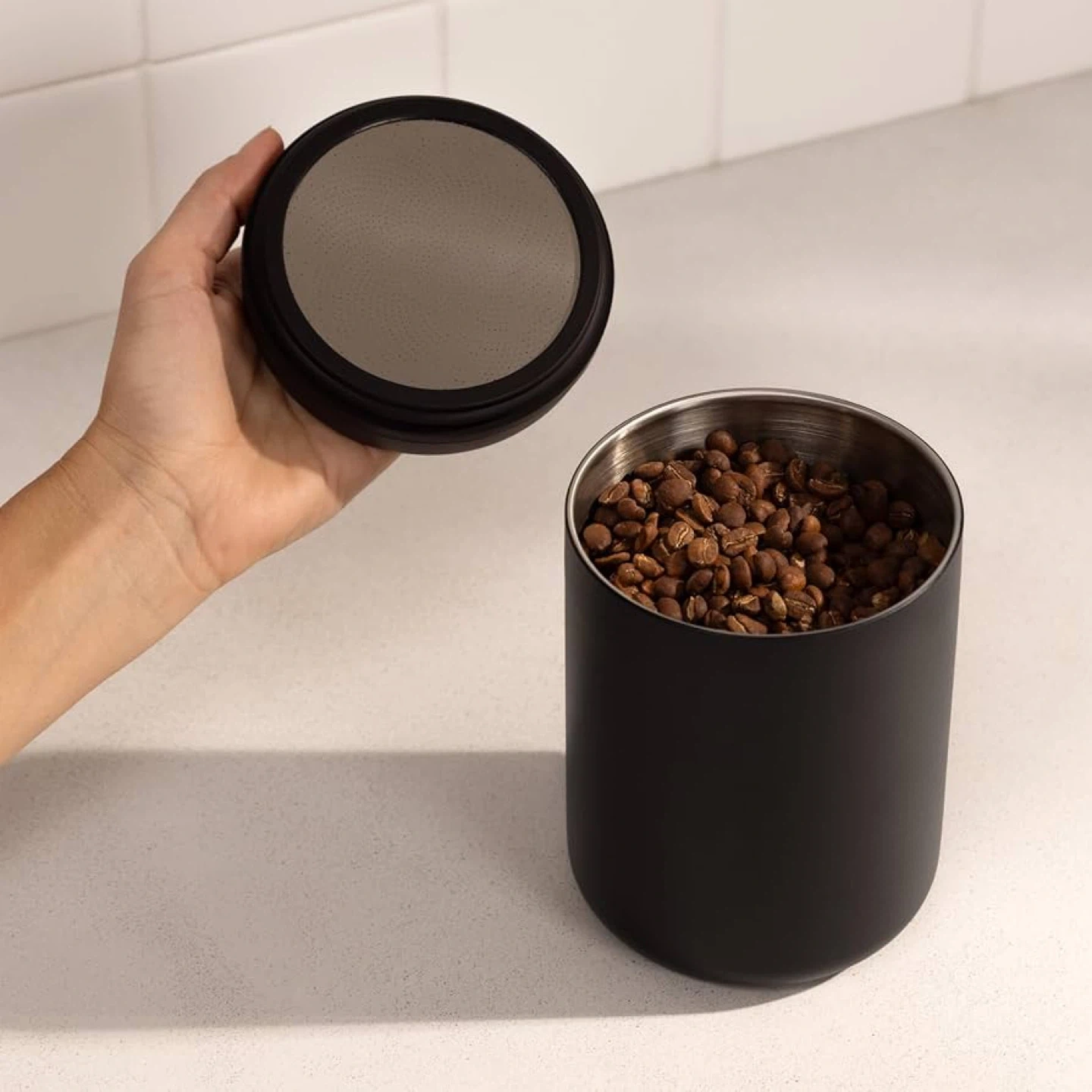 Keep your coffee, snacks, and treats fresher for longer with this Fellow Electric Atmos Vacuum Canister! It's matte black and holds 1.2 liters.