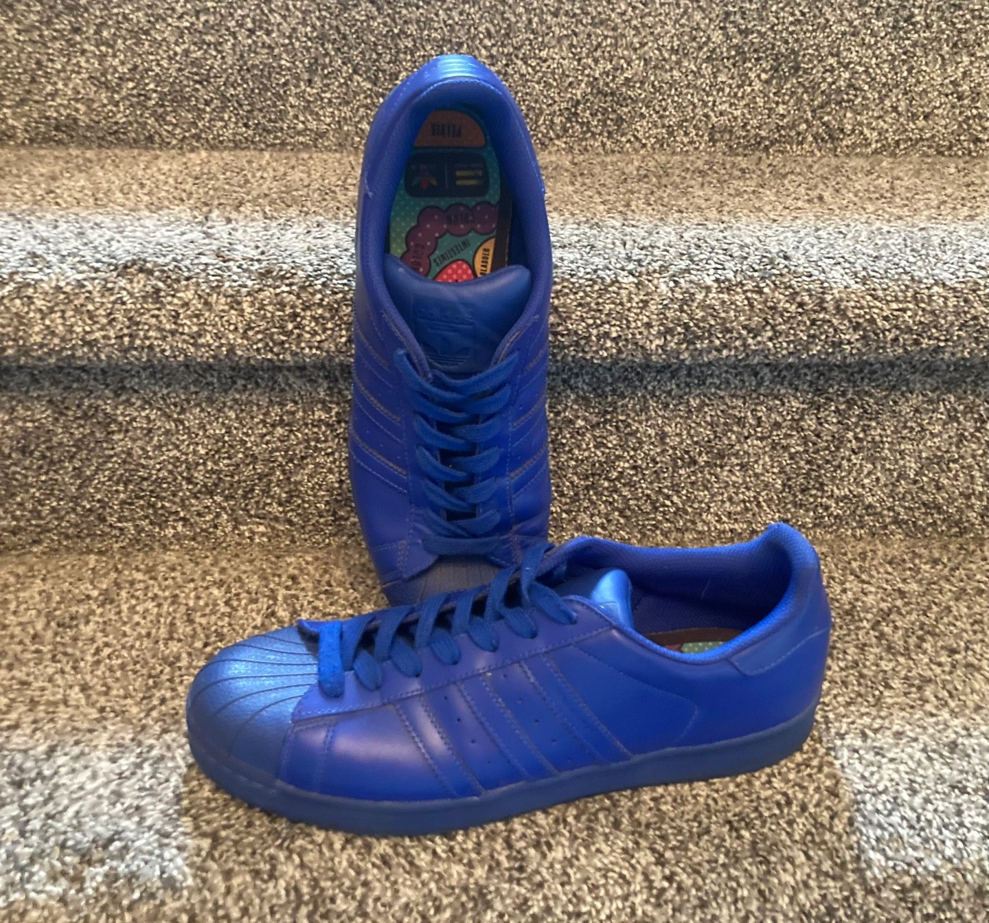 Vintage ADIDAS Supercolor Electric Blue Pharrell Williams Superstars Shoes Mens Size 11.5