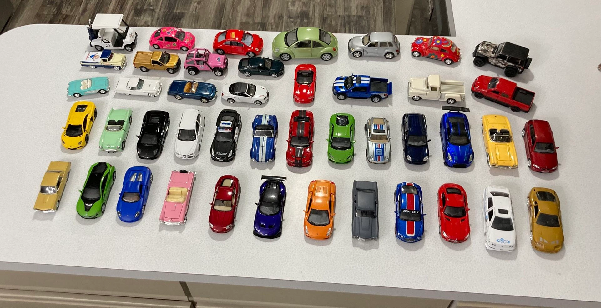 Lot Of 44 Die Cast Metal Replica Toy Cars Trucks Muscle Super Hyper Vintage And More!!! Most our 4 - 5 inches some bigger some smaller. See pics all gently played with.