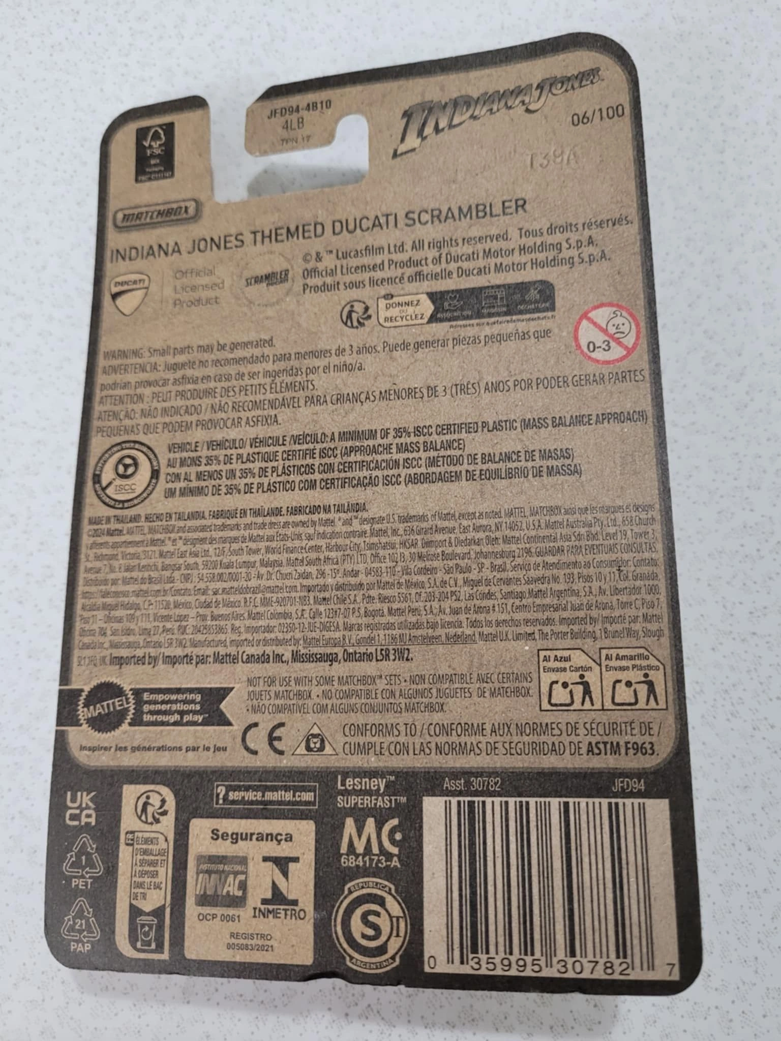 Matchbox Indiana Jones Ducati Motorcycle Diecast Toy New In Pack