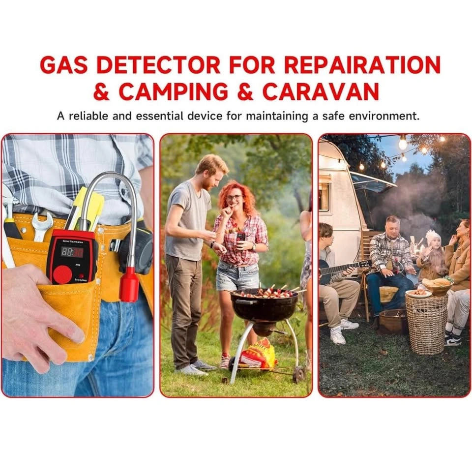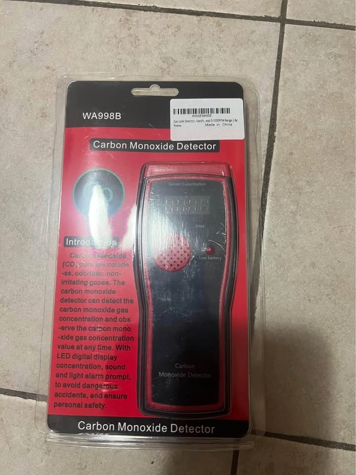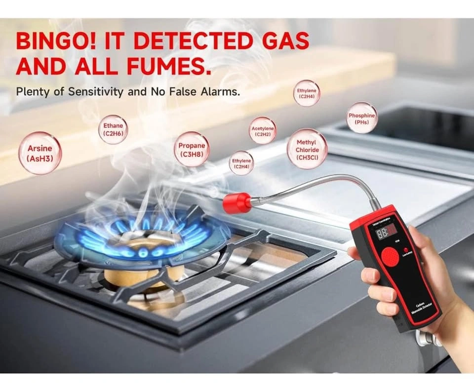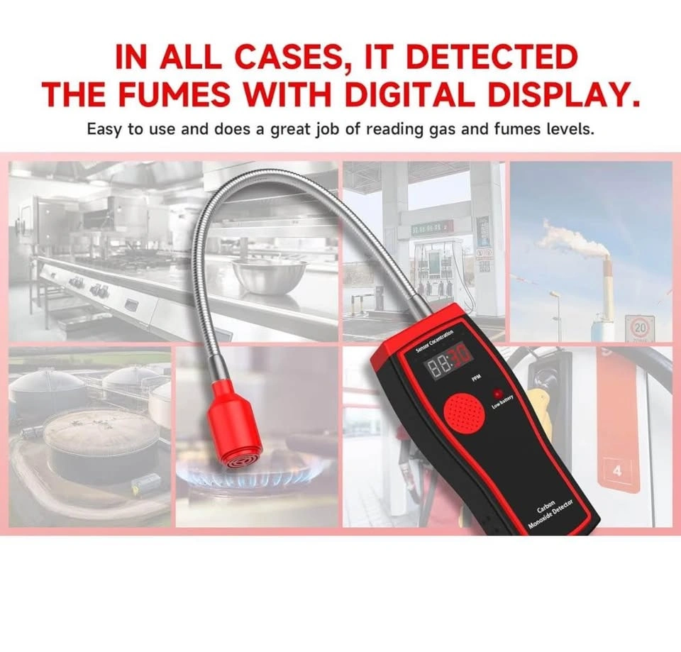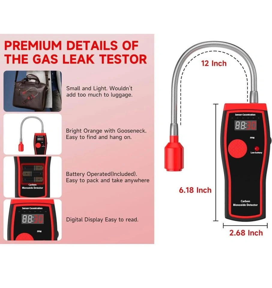 Carbon Monoxide Detector, 12 Inch Long Bendable Sensor, Handheld Carbon Dioxide Detector Portable, with LED Digital Display, Tick Tock Beep, Lighted Warning 3 in 1 Detector for Camping, Home & RV