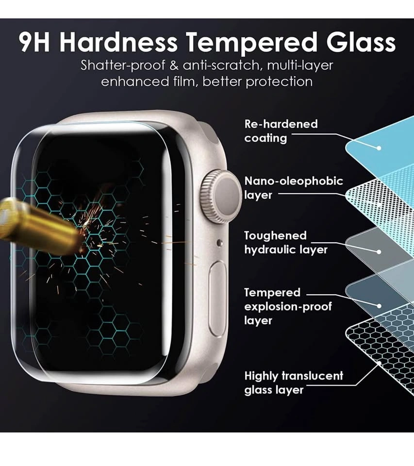 2 Pack Compatible for Apple Watch Series 8/7 Screen Protector 45mm, Tempered Glass 3D Curved Full Cover Waterproof Bubble Free Anti-Scratch HD Film for iWatch Accessories [Auto-Dispersion Tech]