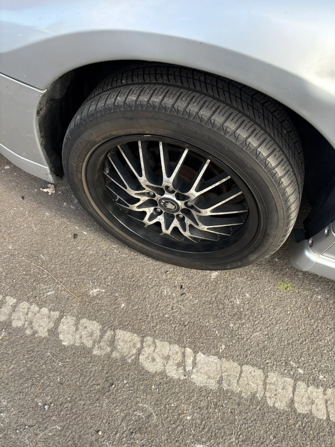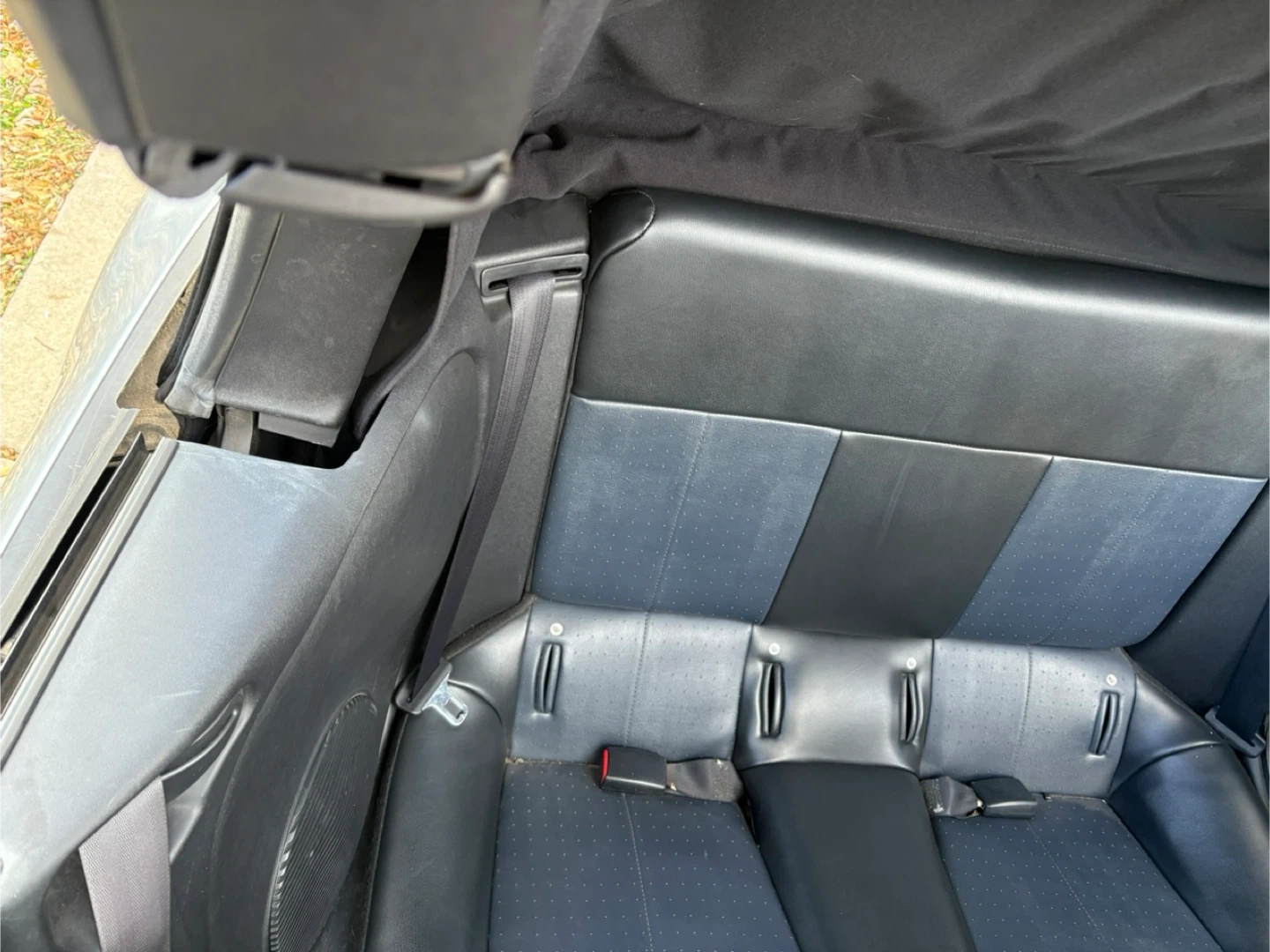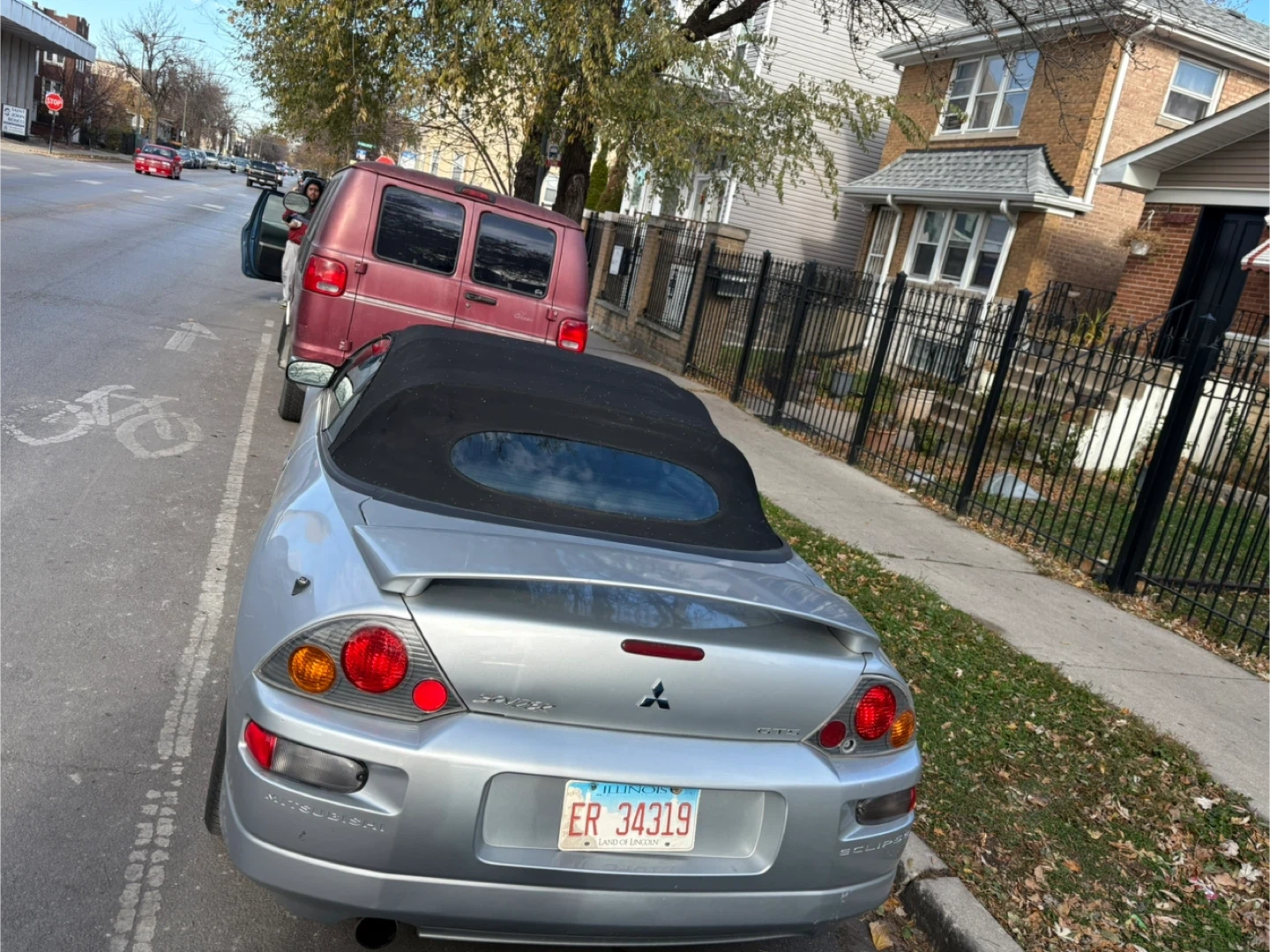 Selling a Mitsubishi Eclipse convertible car. The car is silver and black. The interior is black leather. The car has black rims.