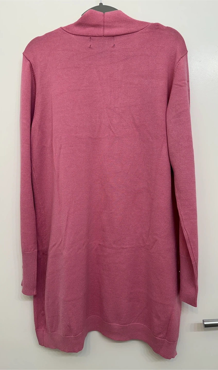Selling a cardigan in a lovely shade of pink! It's a size medium and features a comfortable, open-front design with handy pockets. Perfect for layering or adding a pop of color to your outfit