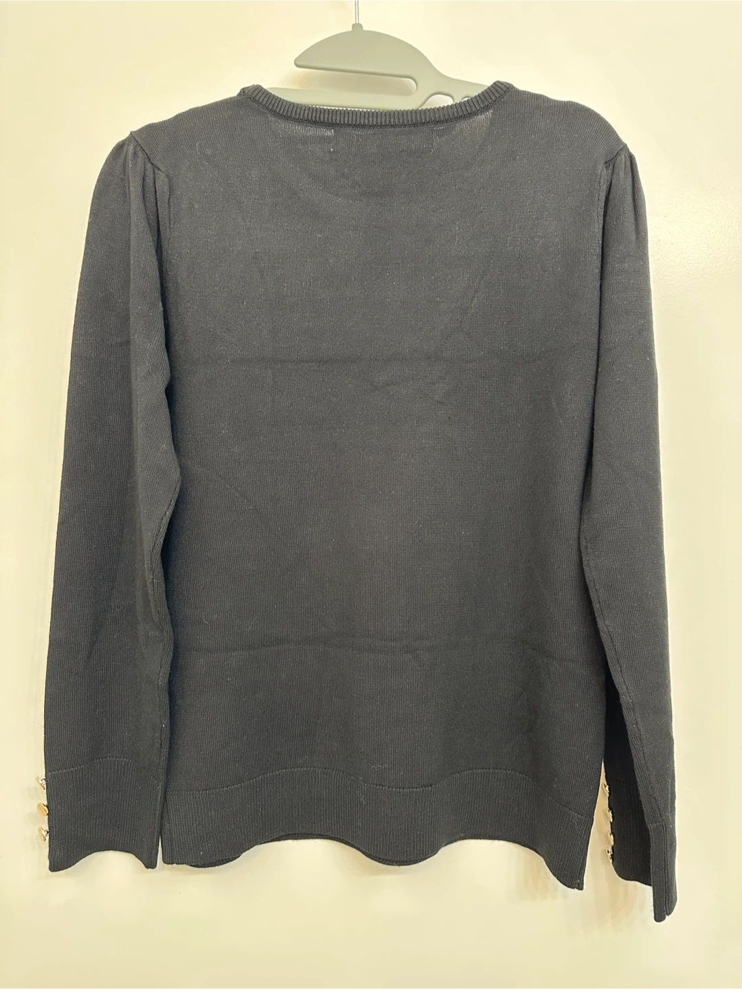 Here's a black sweater in size P/S. It's in great condition and ready for a new home! The material feels soft and comfortable, perfect for layering or wearing on its own. It has a classic, versatile look that can be dressed up or down. Feel free to reach out if you have any questions!