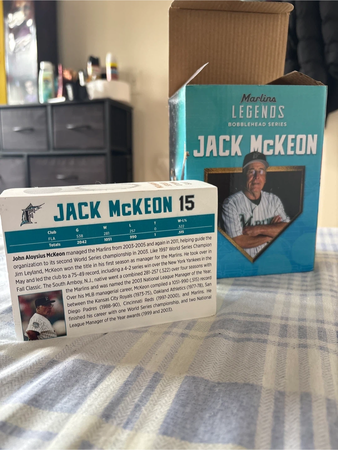 Selling a Jack McKeon bobblehead from the Marlins Legends Bobblehead Series! This bobblehead is in great condition and comes with the original box. A great collectible for any Marlins or baseball fan