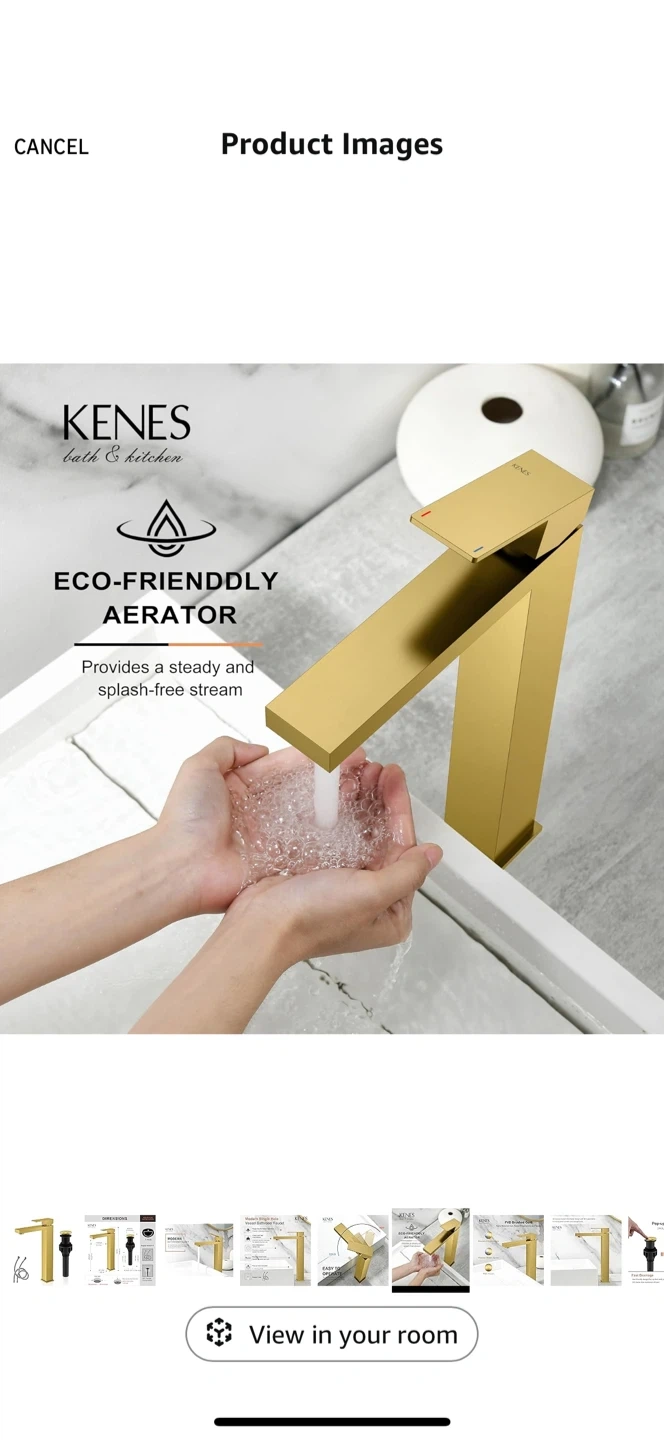 10Selling a KENES bath & kitchen modern single hole vessel bathroom faucet. It has a brushed gold finish that resists corrosion and rust. Key features: - Single handle faucet operation - Long-lasting cartridge - Eco-friendly aerator - Pop-up drain included - Supply lines