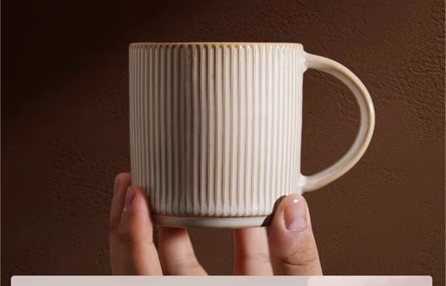 Set of 6 Cream Ribbed Mugs - 12 oz Capacity