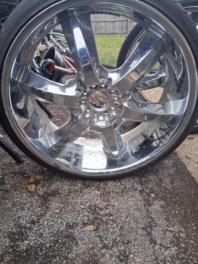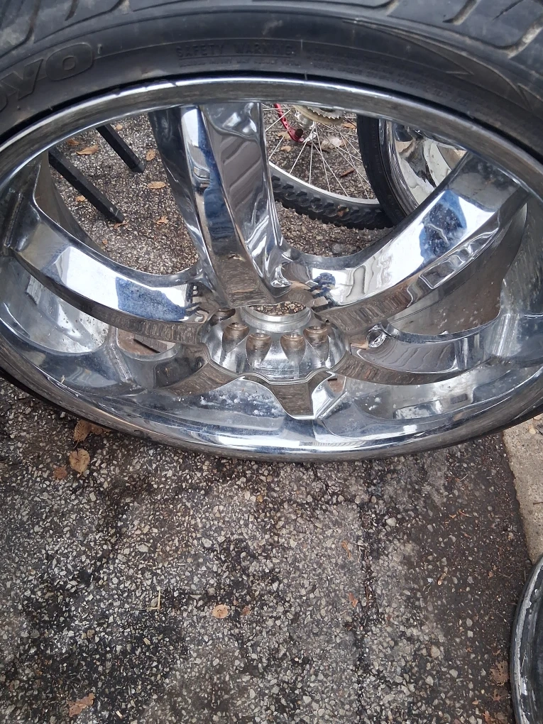 Buy & SellChrome Wheels and Tires SetChrome Wheels and Tires Set$360Selling a set of chrome wheels and tires. They show some signs of use, but are still in good condition for their age. Perfect for giving your ride a unique look! 22inch ConditionGood0 chats·0 favorites·9 viewsSELLERBobbyJoliet100 reviewsWHERE TO MEETgolden corral rt 52