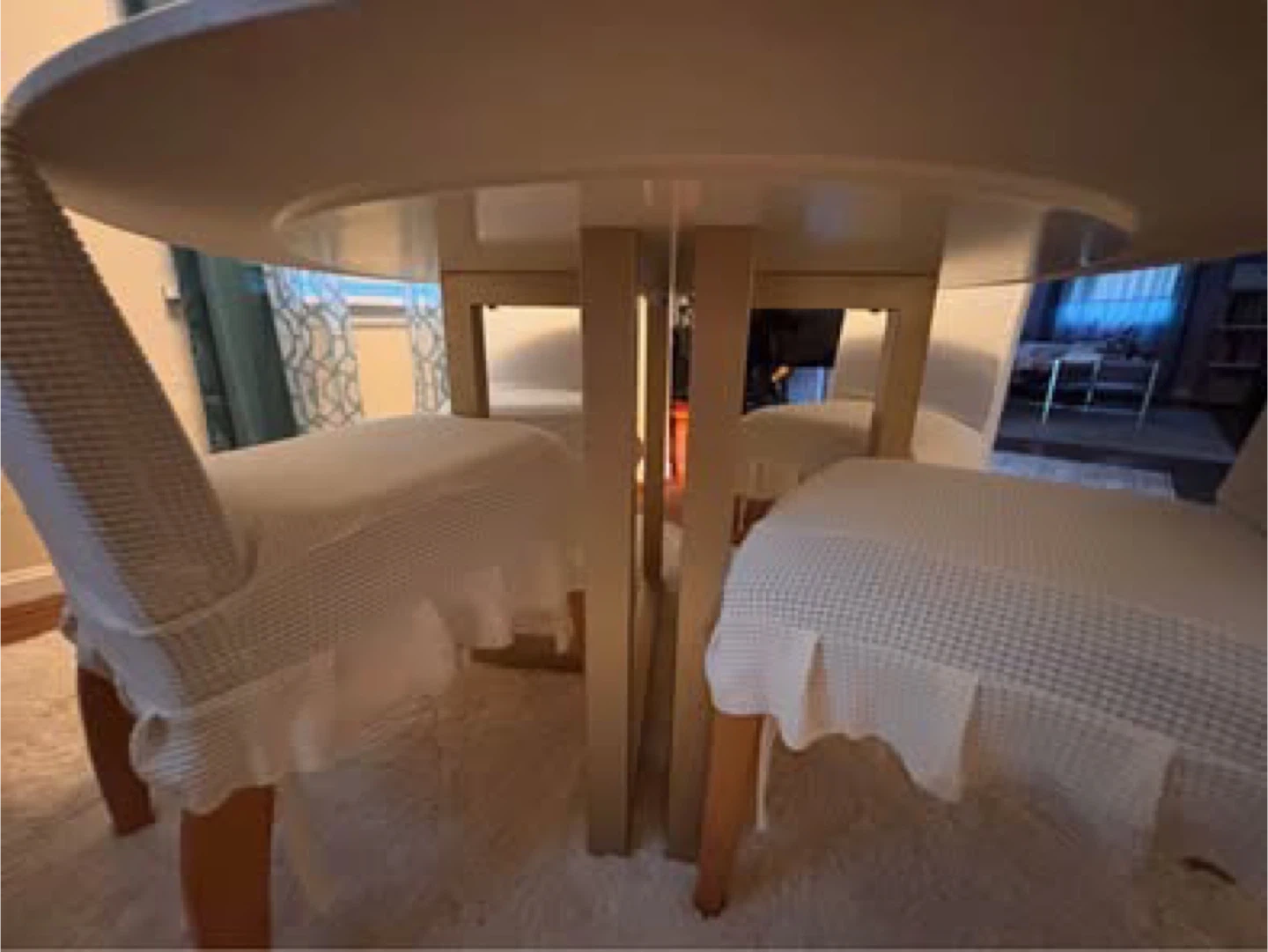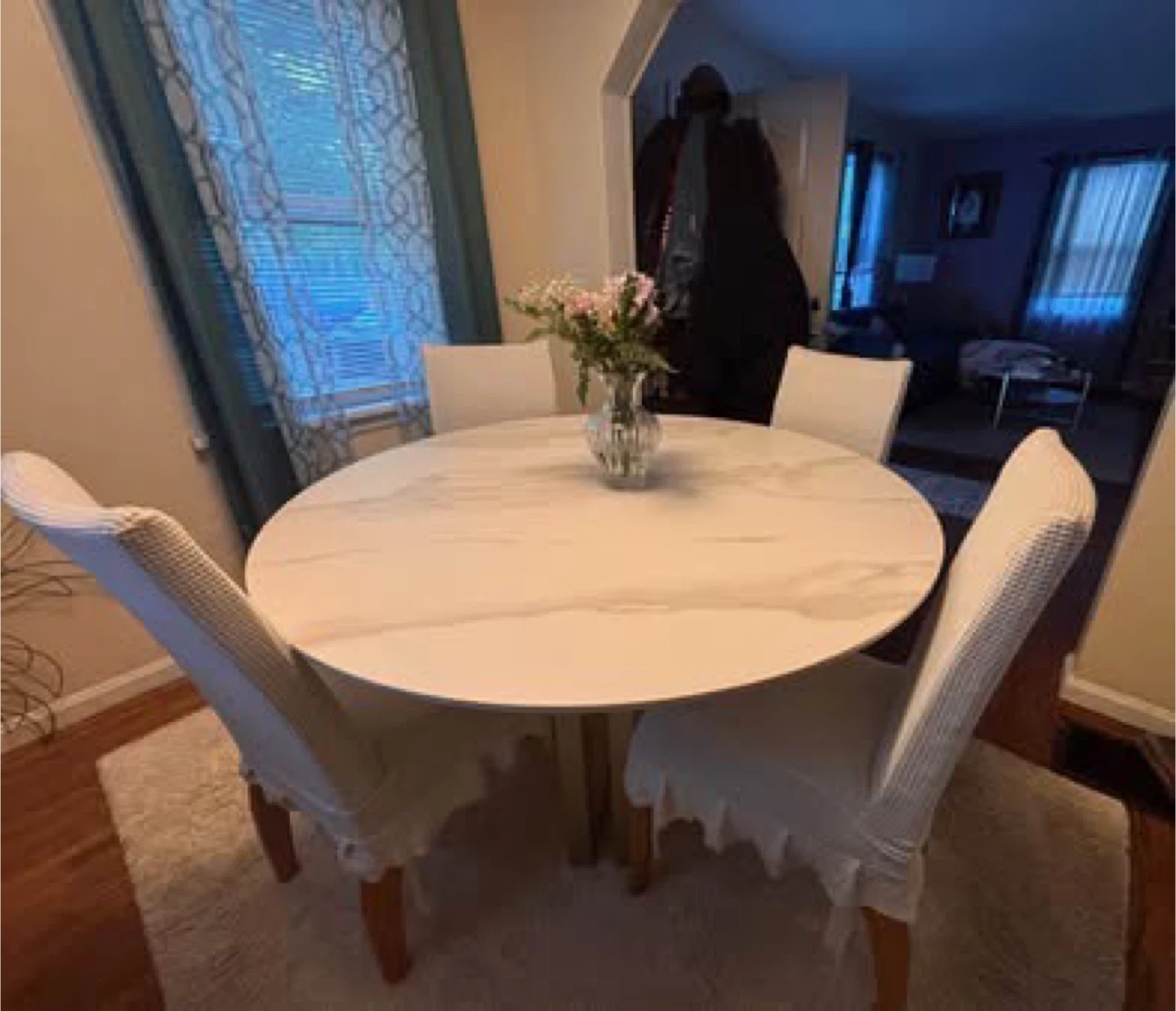 Selling a beautiful Emila Round Sintered Stone Dining Table! The color is a lovely white sintered stone with a champagne base.