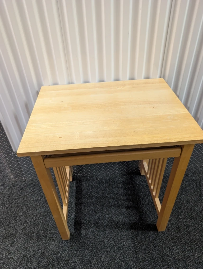 Selling a light-colored wooden desk. It features a convenient pull-out shelf, perfect for a keyboard or extra workspace. The desk is sturdy and in good condition, ready to add some functionality to your home or office