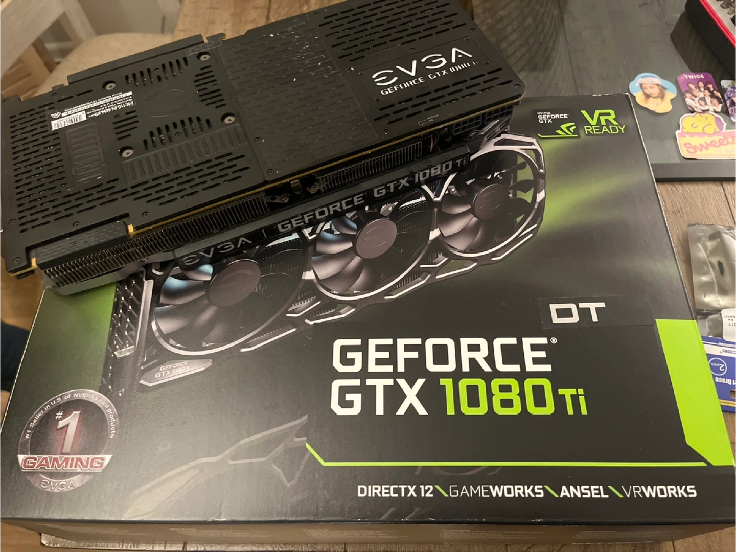 Selling an EVGA GeForce GTX 1080 Ti graphics card! It's in great condition and comes with the original box. Perfect for gaming or VR setups. Get ready for some serious performance!