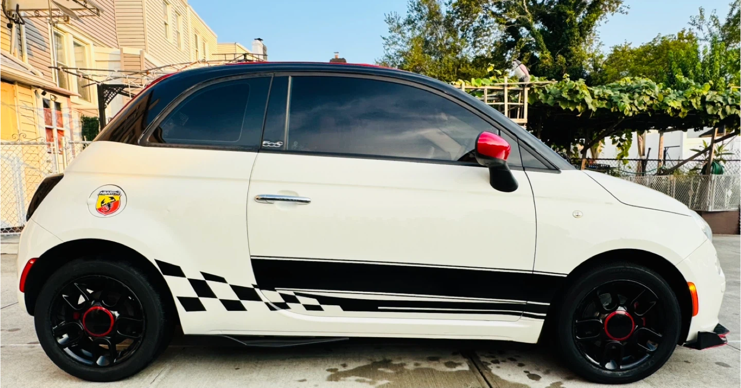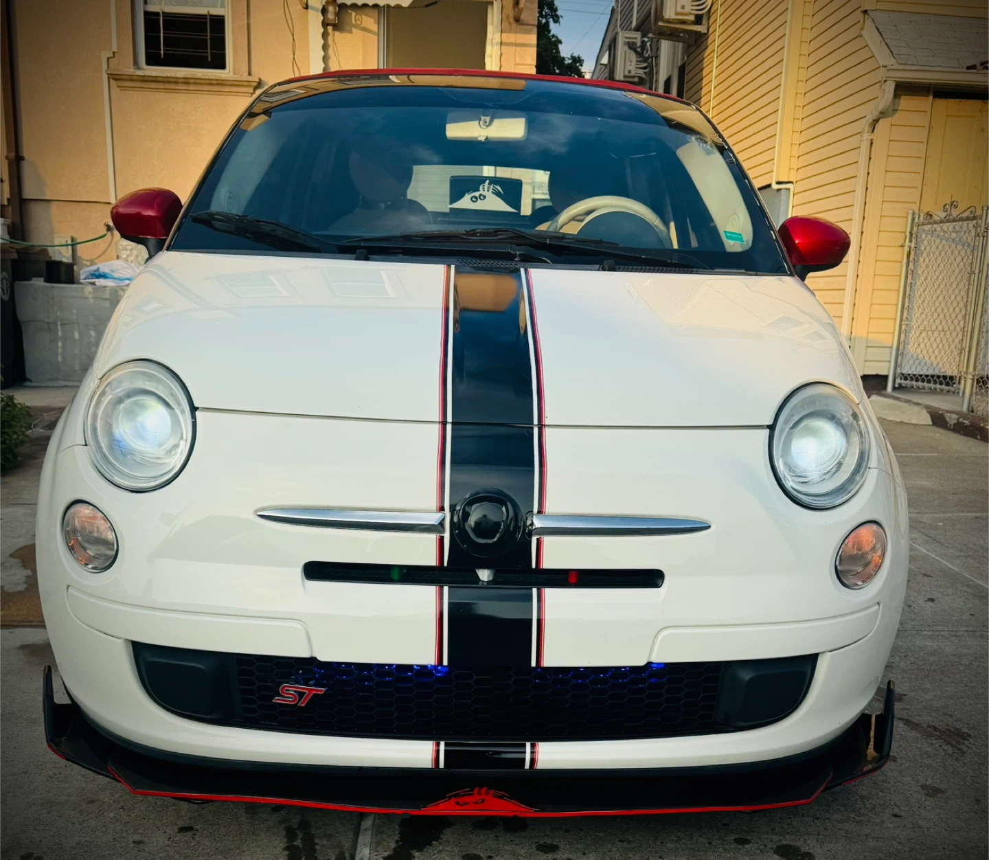 Selling a Fiat 500 ST in white with black stripes. It's in great condition and ready for a new owner! The sporty design and compact size make it perfect for city driving.