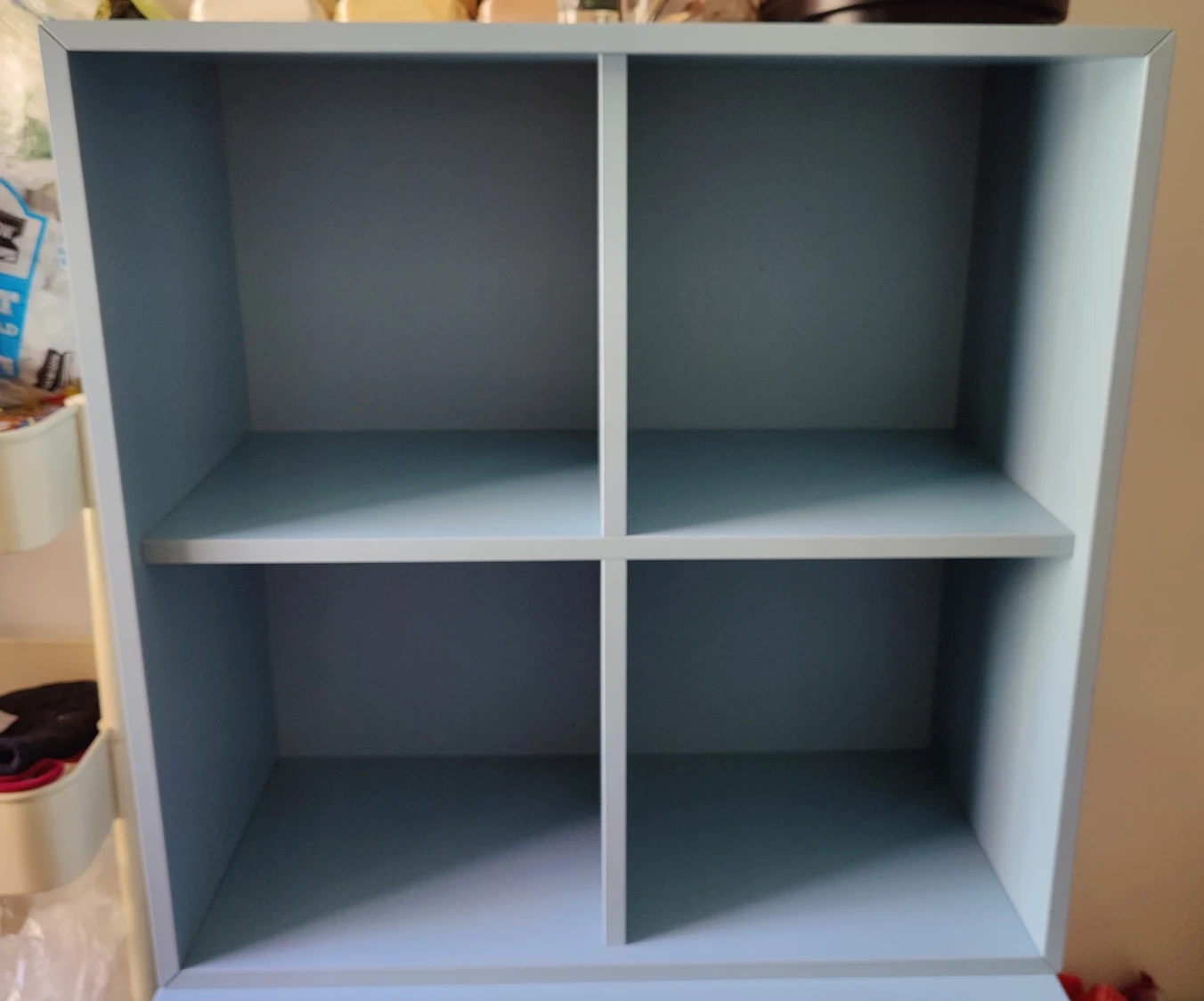 Selling one (or two for $40) IKEA EKET light blue (discontinued) storage shelf with four cubes, perfect for organizing your space! It's in good shape and ready for a new home.
