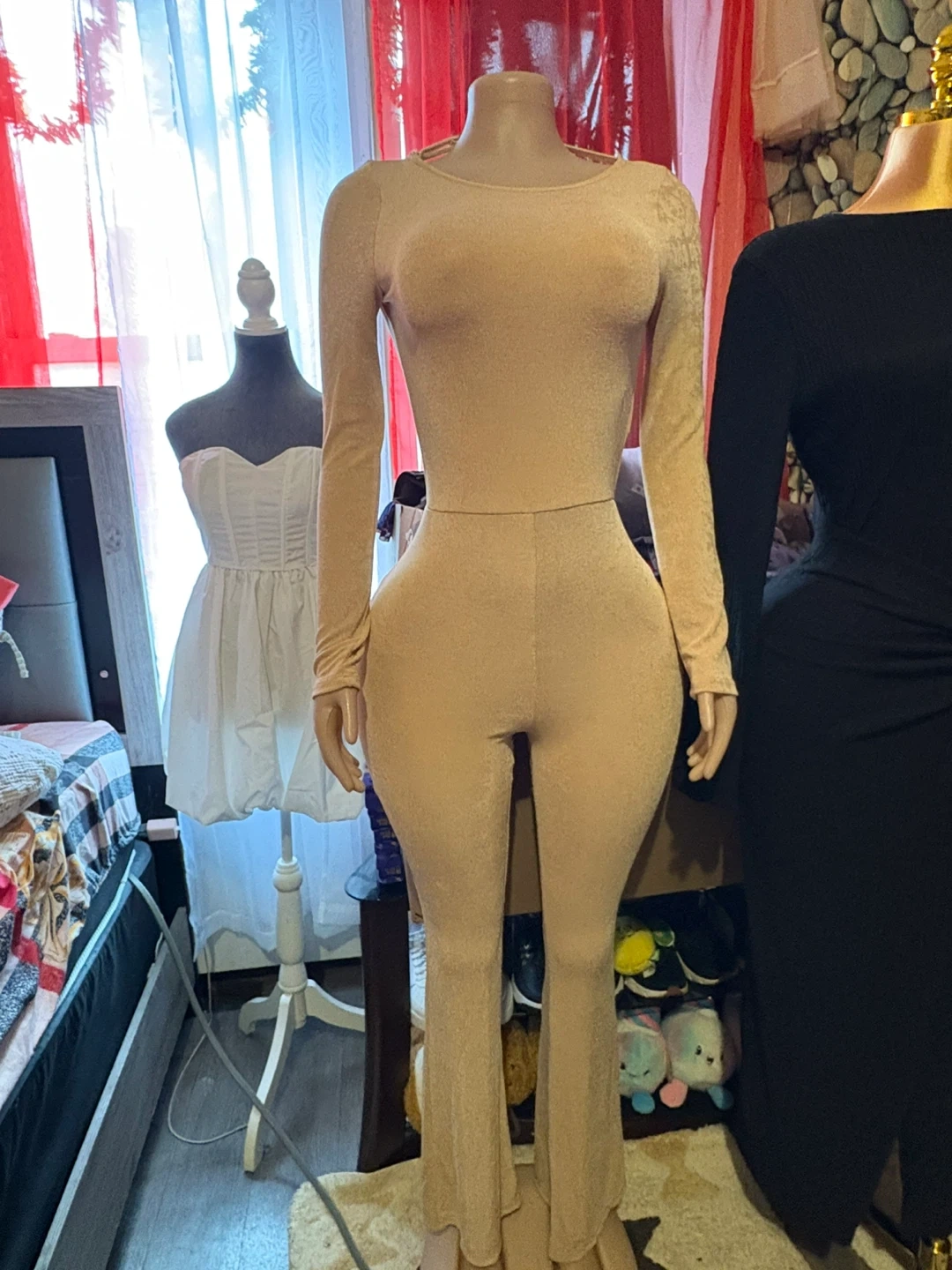 I'm selling a beige jumpsuit. It appears to be in good condition and would be a great addition to your wardrobe!