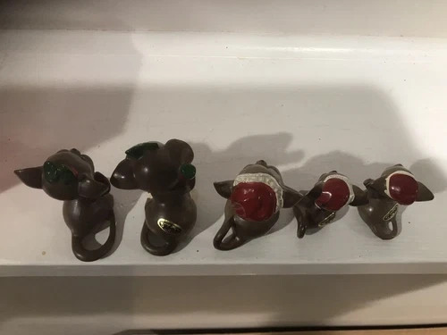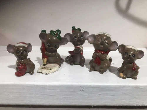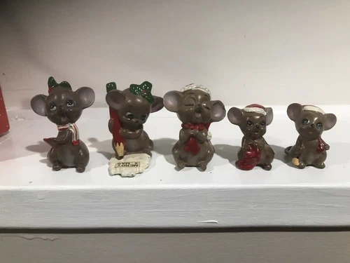 Add some vintage charm to your Christmas decor with these adorable Josef Original Christmas Mice figurines. Crafted with intricate details, these figurines are perfect for collectors and enthusiasts alike. The set includes five unique mice, each with their own distinct personality and design. These figurines are perfect for any Christmas occasion and will add a touch of whimsy to your tree or display. Made by Josef, a trusted brand in the world of collectibles, these Original Christmas Mice are a must-have for any sculpture or figurine enthusiast. Don't miss out on the chance to add these delightful mice to your collection. Some wear, please see photos or ask for more. One mouse is missing hand. See photos