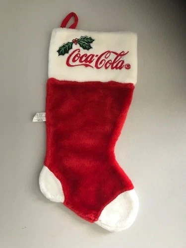 Vintage 1998 Coca-Cola Plush Christmas stocking, Red w/ holly be