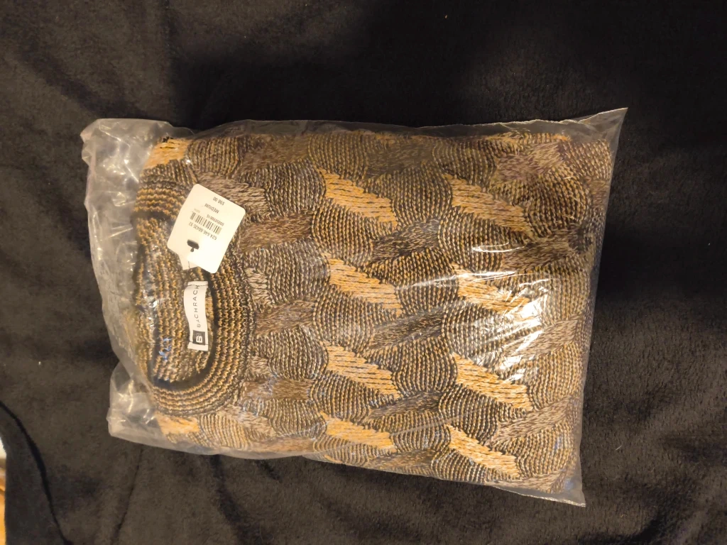 Selling a brand new Bachrach sweater, still in its original packaging with tags attached! The sweater is a size medium and features a unique pattern. The original price was $98