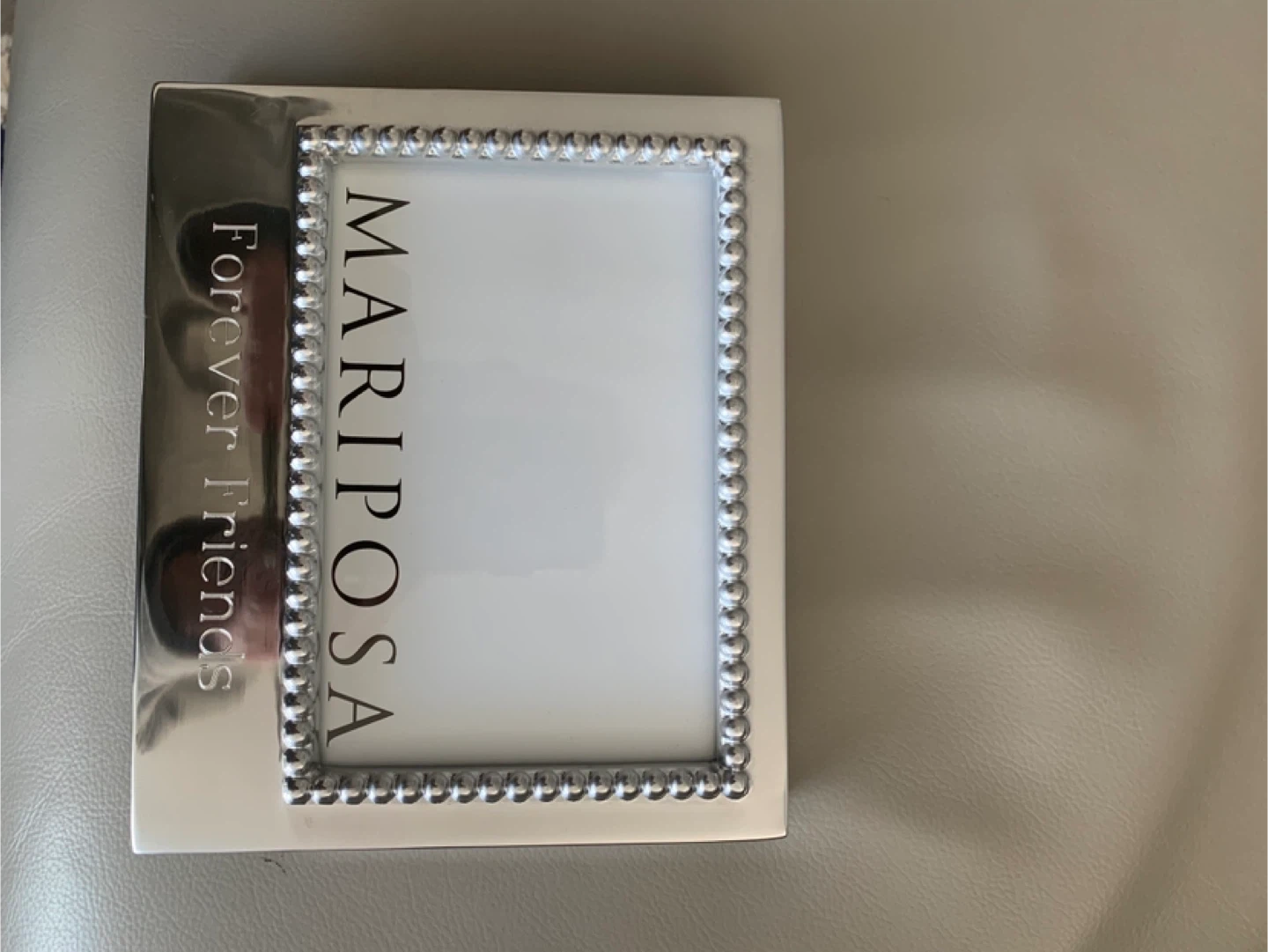 Here's a Elegant Mariposa picture frame that says "Forever Friends"! It's perfect for displaying your favorite memories with your besties. 4”WX 6” L fir Wedding, Individual Portrait Pictures. Overall Dimensions: 6 1/2@ X 5 1/2”, Silver in Color.