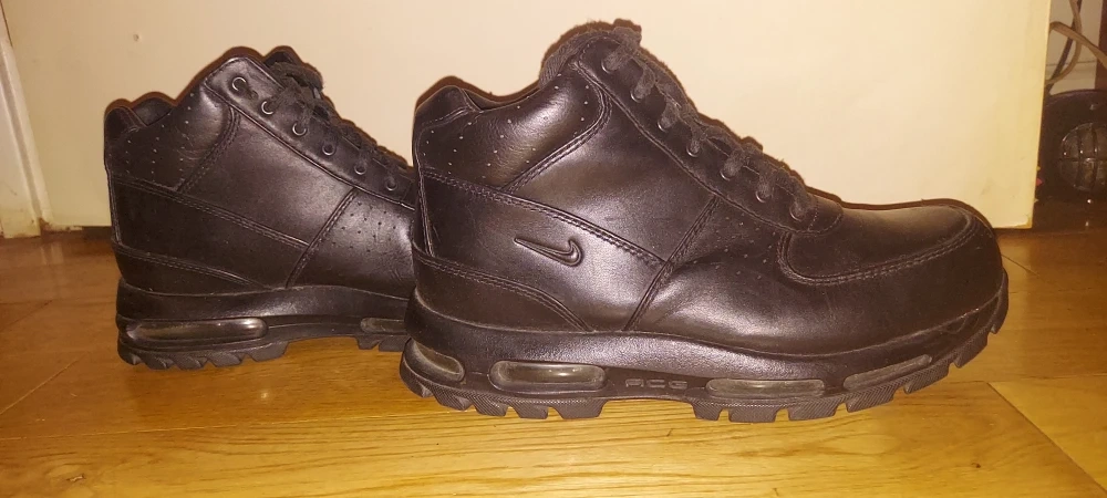 Selling a pair of Nike Air Max Goadome boots in black. These boots are in great condition and ready for any weather! They feature the classic Air Max cushioning for all-day comfort and a durable outsole for traction. Perfect for anyone needing a reliable and stylish boot!