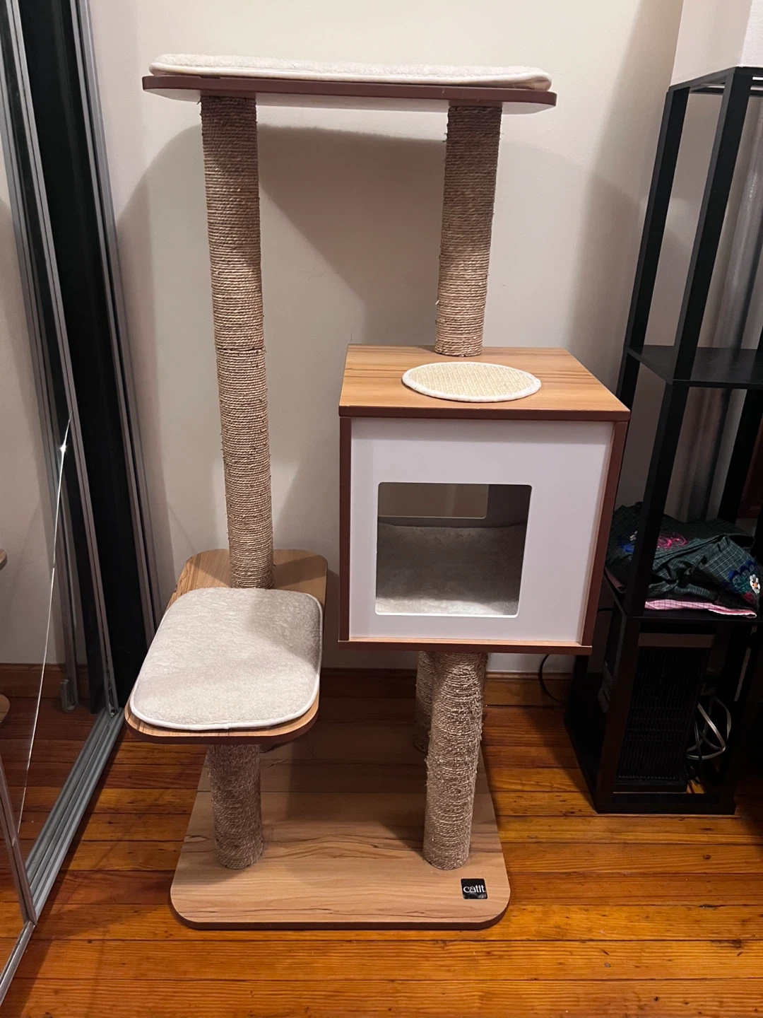 This minimal but stylish cat tree usually retails for almost $250! This one is in GREAT shape, but I am pricing to move, and because I do not have the toy attachment/one of the scratching posts has some minor unwinding. Other than that it’s in perfect condition. My cat just does not use/appreciate it enough, so want it to find a good home!