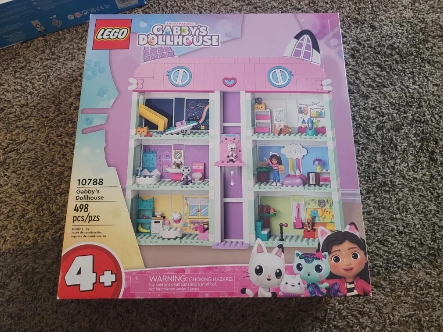 Selling a LEGO Gabby's Dollhouse set (model 10788) with 498 pieces! It's perfect for kids ages 4 and up who love building and creative play. The box shows all the fun rooms and characters you can create. This set is ready for a new home and hours of fun!