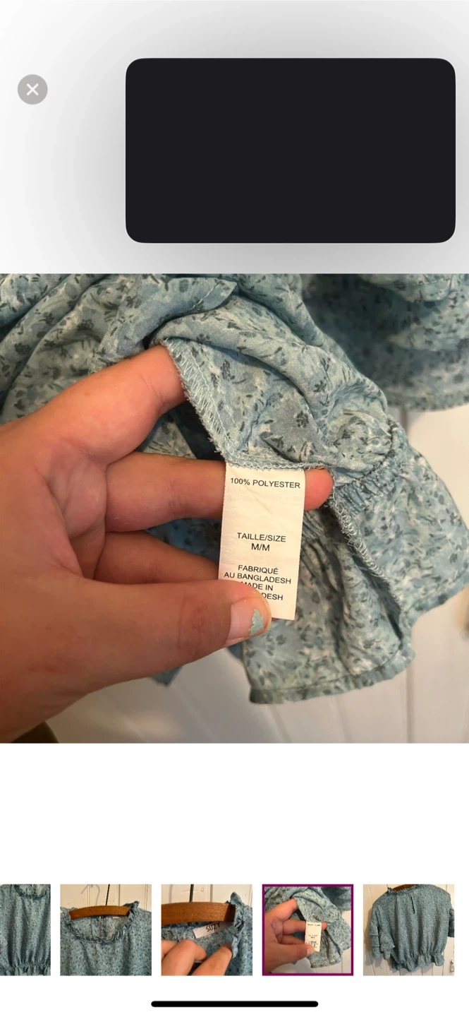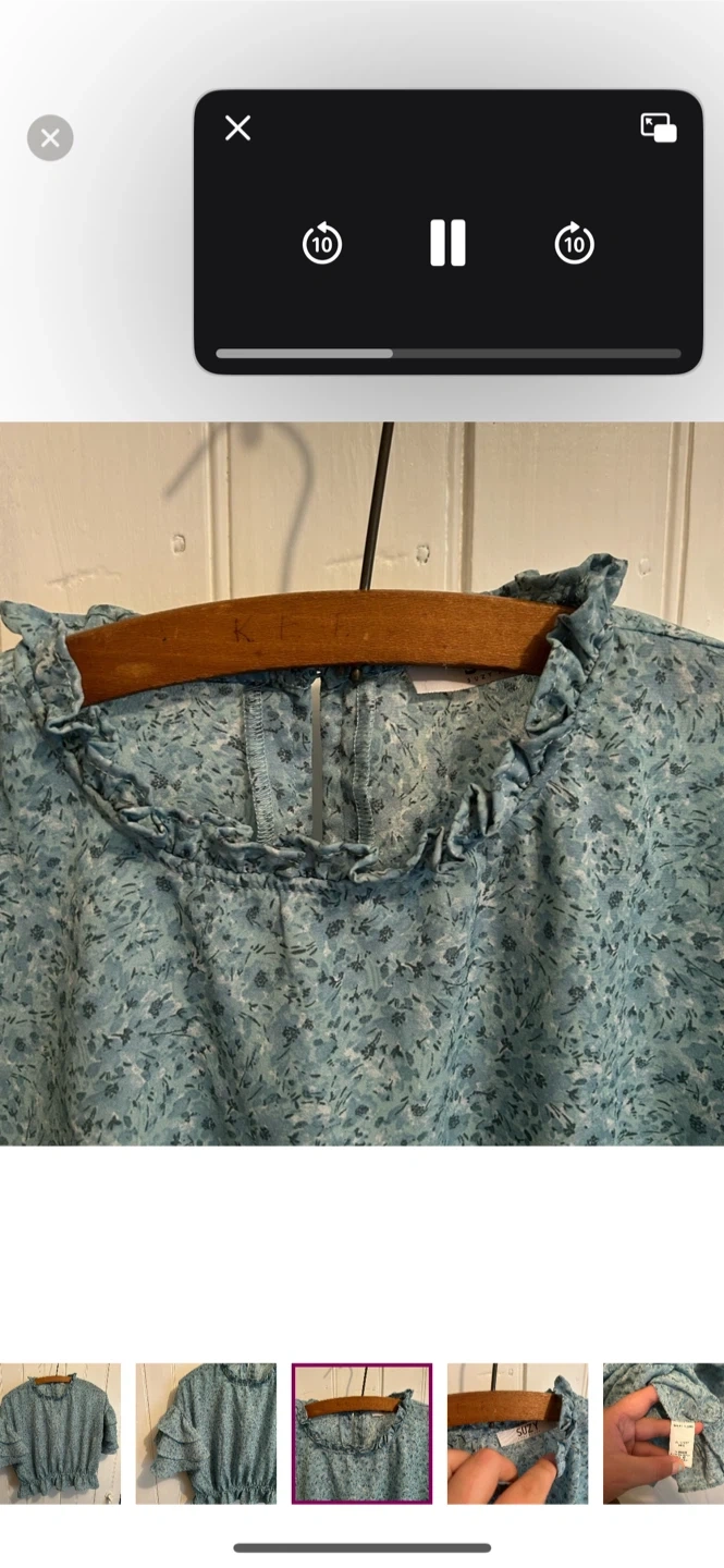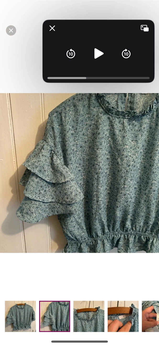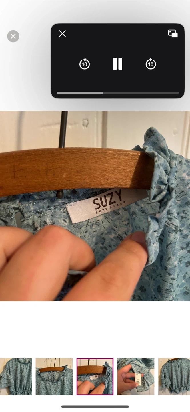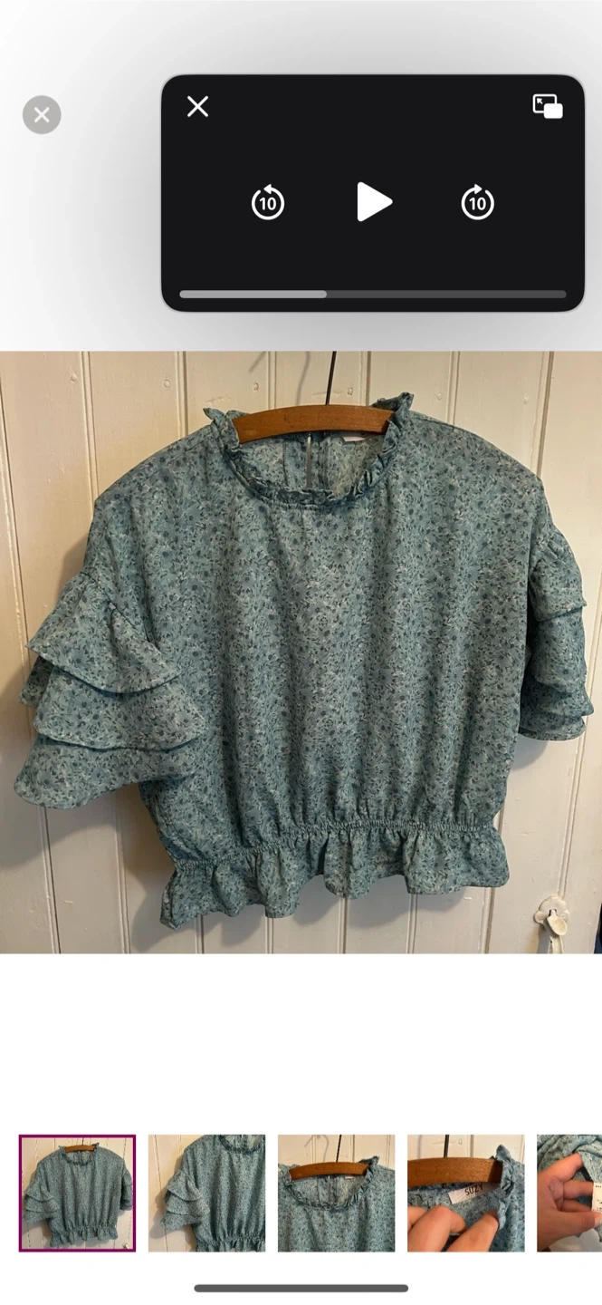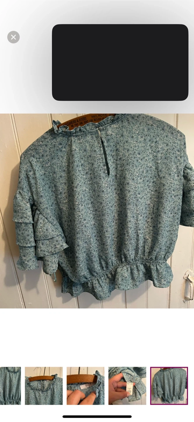 Suzy sheir brand. Short ruffle sleeve high neck blouse. Slightly cropped. Blue floral. Size medium. Brand new condition
