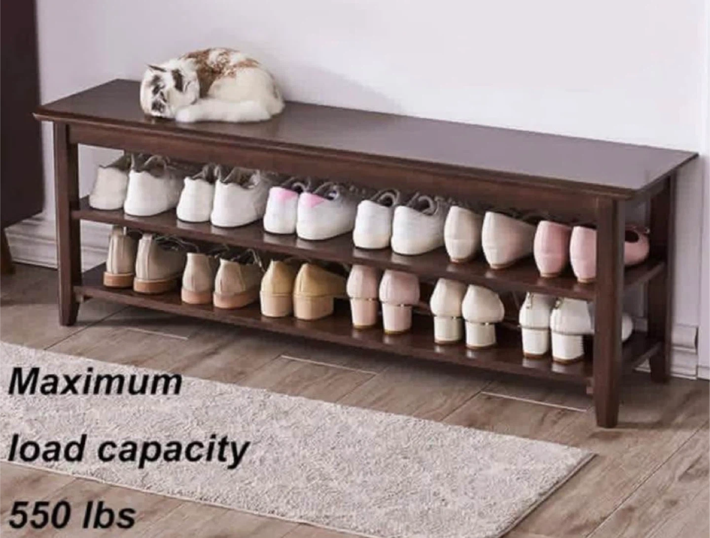 Un-opened box. I have 4 boxes. It can hold up to 12 pairs of shows. It has a maximum load capacity of 550 lbs. The bench rack is stable, sturdy, look good and eco-friendly. Suitable for your entryway, hallway, living room and bedroom.