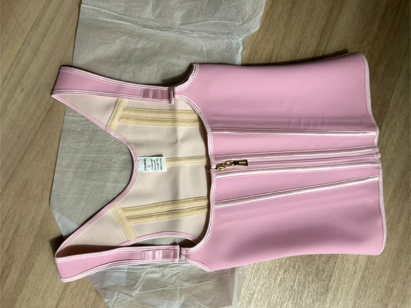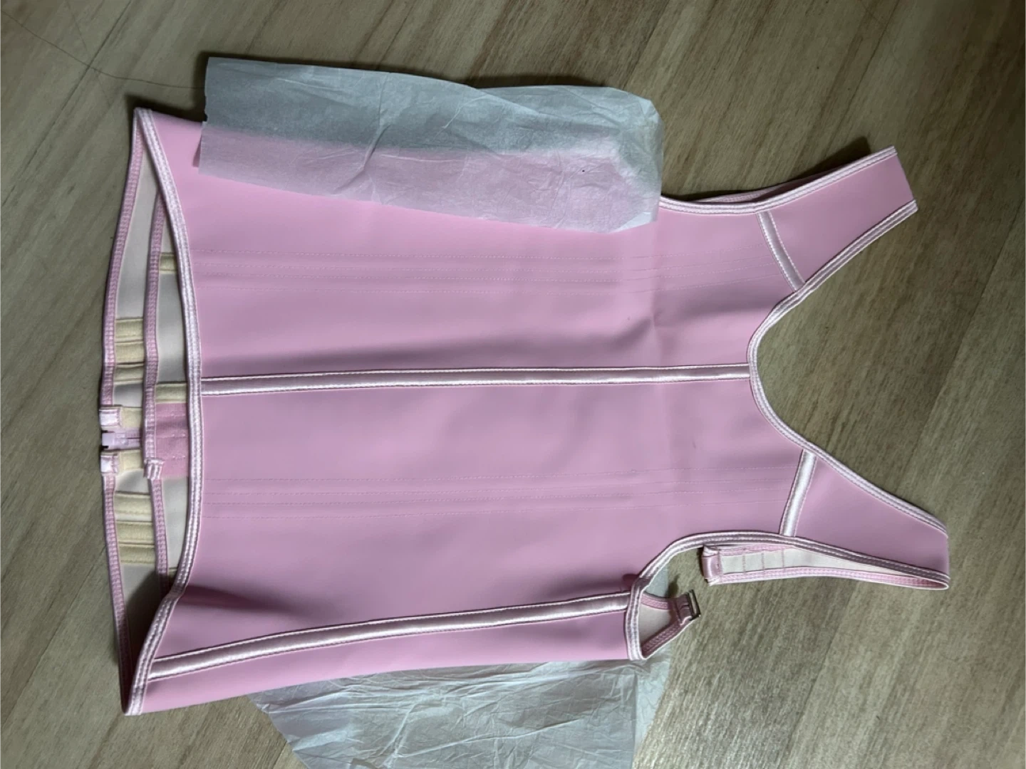 Selling a Chic Gear waist trainer in pink, size small! It features a hook and eye closure in the front, adjustable straps, and is designed for postpartum support. Originally bought for $30.62-$37.44