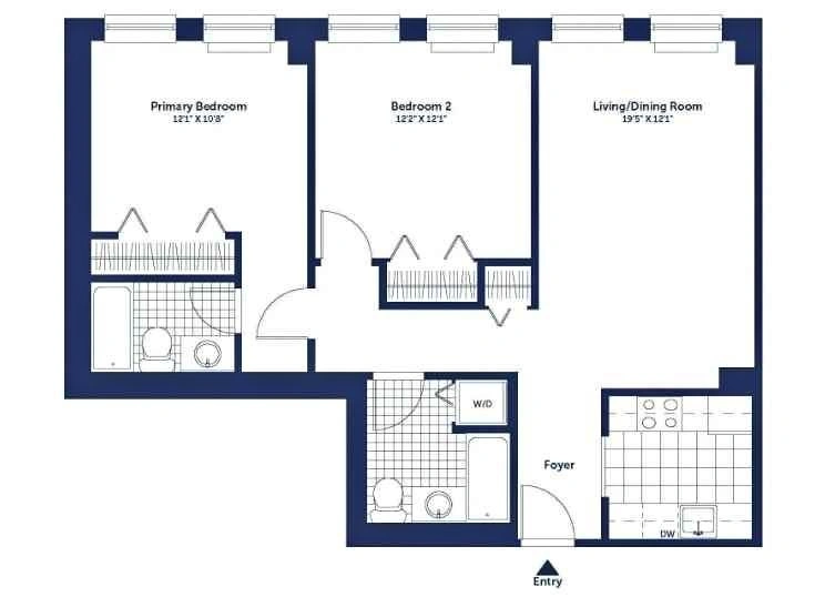 Big master bedroom with attached bathroom in a 2 bed/2 bath apartment available now for lease transfer (flexible move-in date) in Paulus Hook.